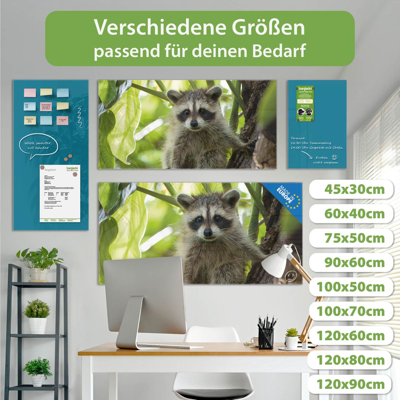 Die banjado Glas Magnettafel mit dem Motiv Motiv Waschbär verbindet Funktionalität mit Stil. Sie ersetzt das Zettelchaos durch klare Strukturen und bringt dabei eine warme, natürliche Atmosphäre in Ihr Zuhause. Ob im Büro, in der Küche oder im Eingangsbereich - dieses Design-Board zieht Blicke an und sorgt für Ordnung mit Charakter.