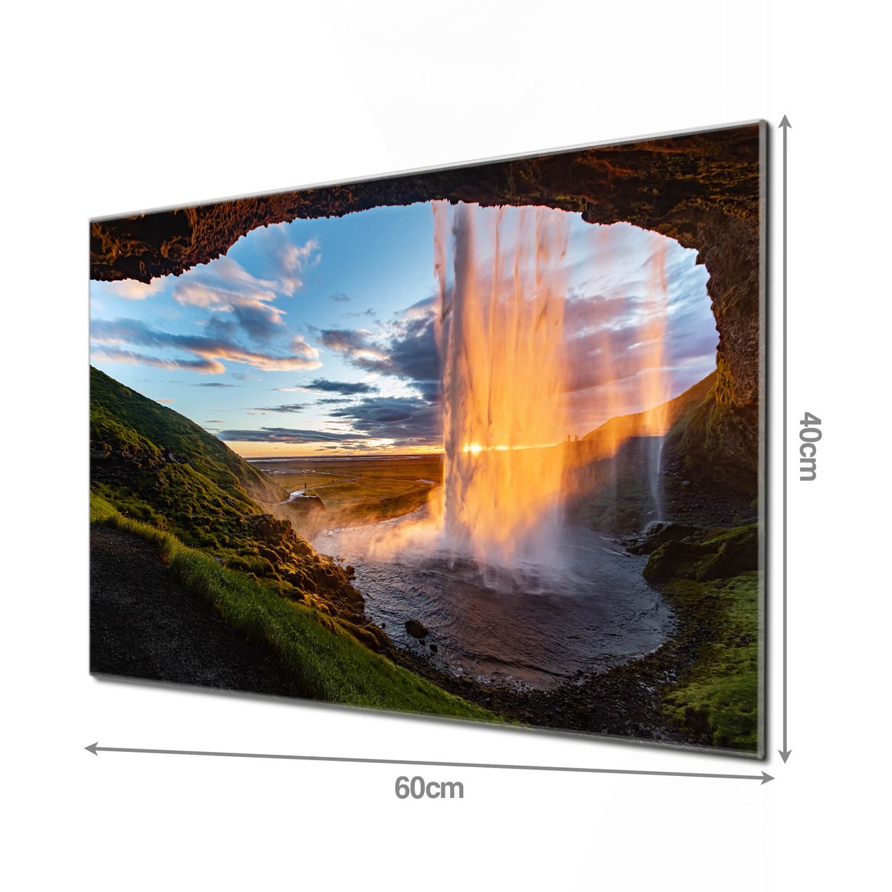 Material  4mm Sicherheitsglas mit Metallrückwand Eigenschaften  beschreibbar, magnetisch, kratzfest Maße  60x40x0,6cm, 3,6kg schwer Motiv  Nummer 12987 Wasserfall im Sonnenlicht Zubehör  inklusive 4 Neodym-Magnete
