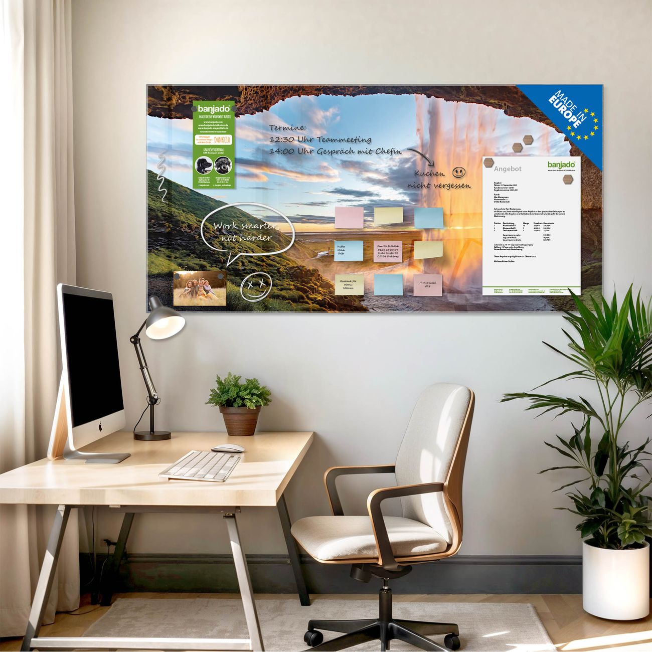 Jede Glas Magnettafel wird in unserer Werkstatt von Hand gefertigt und sorgfältig geprüft. So erhalten Sie ein echtes Qualitätsprodukt, das Funktion und Ästhetik perfekt vereint.?? Warum banjado?