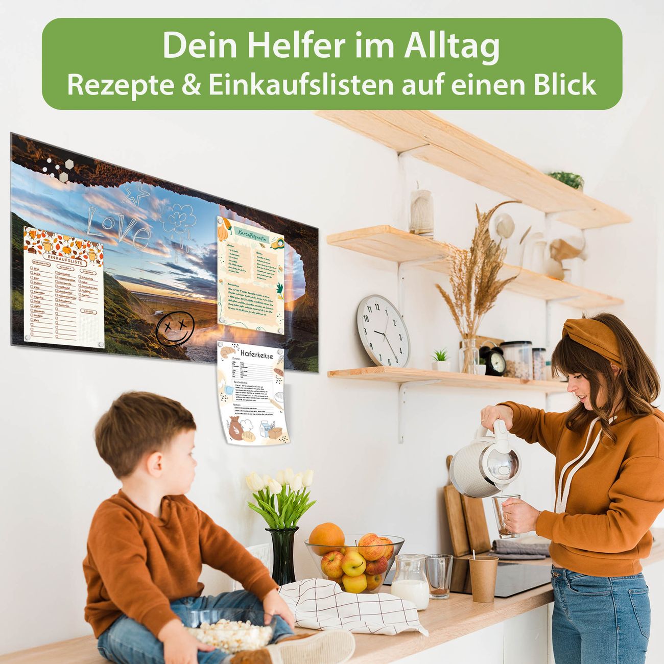 Ein Stück Design, das Ihren Alltag organisiert. Schreiben, heften, inspirieren - alles an einem Ort. Qualität, die man spürt. Montage leicht gemacht. Handwerk mit Herz - veredelt in Sachsen. Einzigartiges Design mit Motiv Motiv Wasserfall im Sonnenlicht Beschreibbare Glasoberfläche, leicht zu reinigen Starke Magnetkraft durch Stahlrückwand Inklusive 4 Neodym-Magneten Flexible Montageoptionen Handveredelt in Sachsen - Qualität, die bleibt