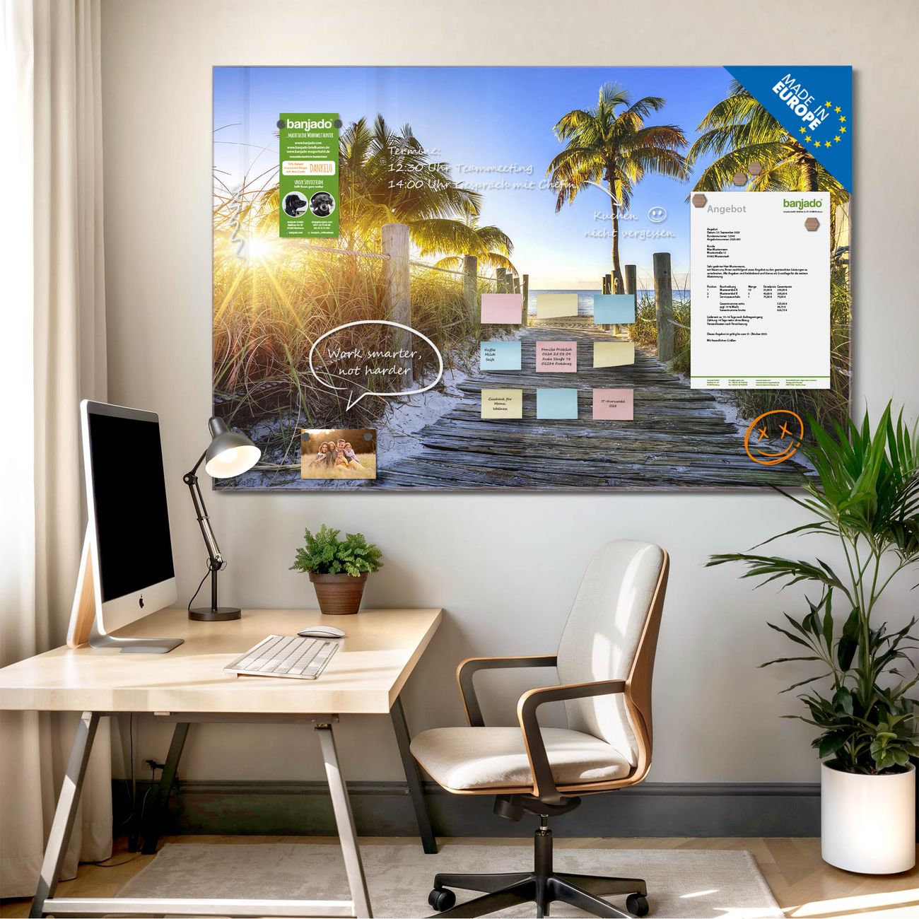 Die banjado Glas Magnettafel mit dem Motiv Motiv Weg zum Strand verbindet Funktionalität mit Stil. Sie ersetzt das Zettelchaos durch klare Strukturen und bringt dabei eine warme, natürliche Atmosphäre in Ihr Zuhause. Ob im Büro, in der Küche oder im Eingangsbereich - dieses Design-Board zieht Blicke an und sorgt für Ordnung mit Charakter.