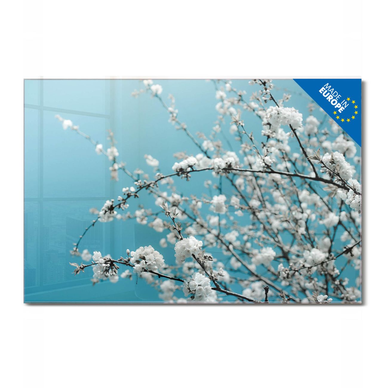 Material: 4mm Sicherheitsglas mit Metallrückwand Eigenschaften: beschreibbar, magnetisch, kratzfest Maße: 45x30x0,6cm, 2,03kg schwer Motiv Nummer 12881 weiße Kirschblüten Zubehör: inklusive 4 Neodym-Magnete