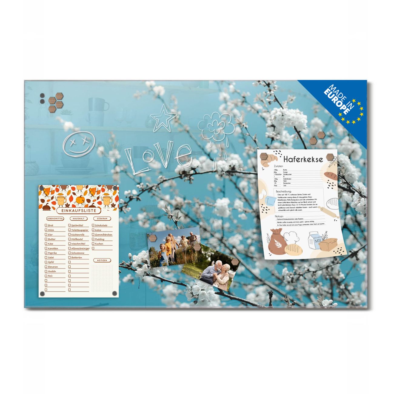 Glas Magnettafel im Querformat Motiv weiße Kirschblüten