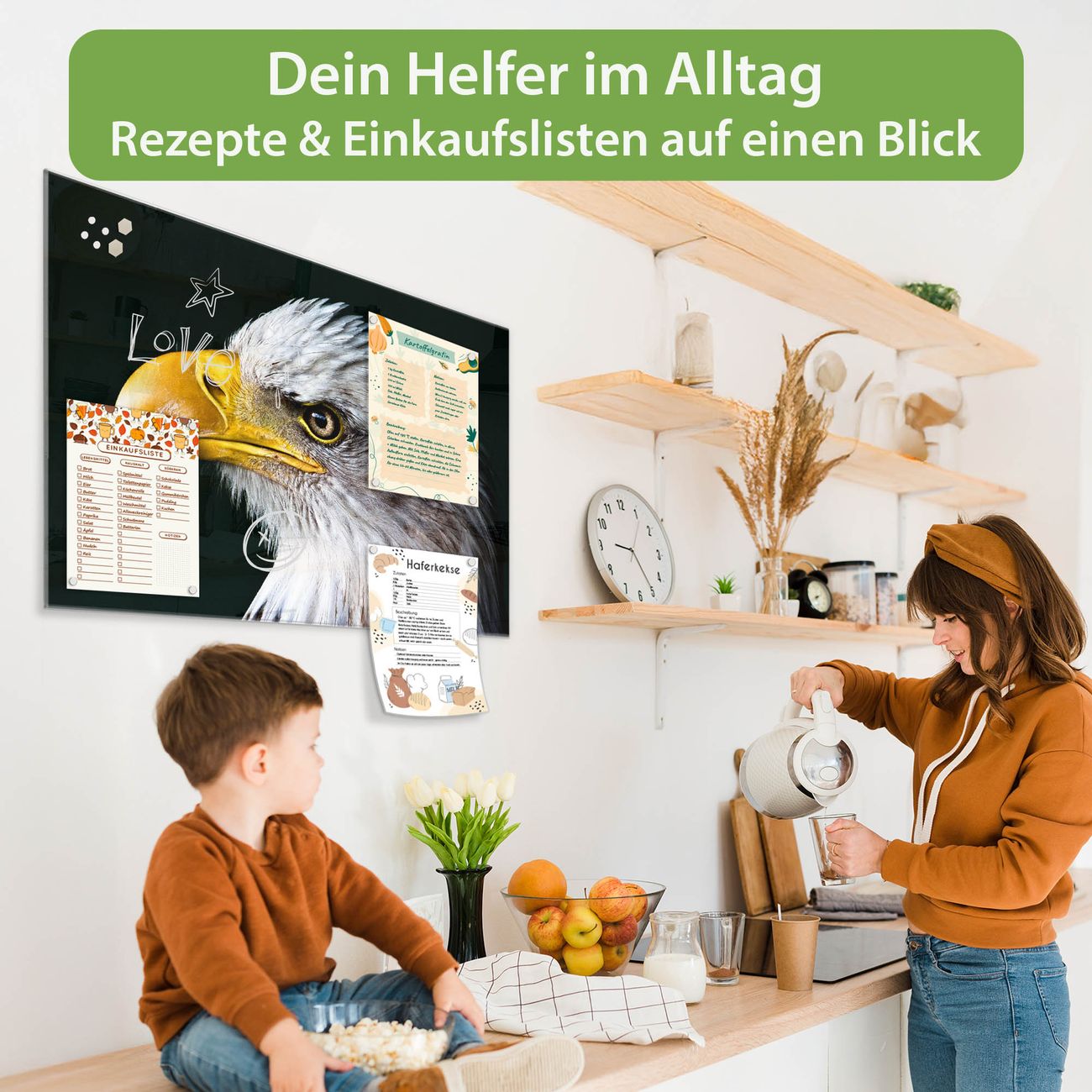 Ein Stück Design, das Ihren Alltag organisiert. Schreiben, heften, inspirieren - alles an einem Ort. Qualität, die man spürt. Montage leicht gemacht. Handwerk mit Herz - veredelt in Sachsen. Einzigartiges Design mit Motiv Motiv Weißkopfseeadler Beschreibbare Glasoberfläche, leicht zu reinigen Starke Magnetkraft durch Stahlrückwand Inklusive 4 Neodym-Magneten Flexible Montageoptionen Handveredelt in Sachsen - Qualität, die bleibt