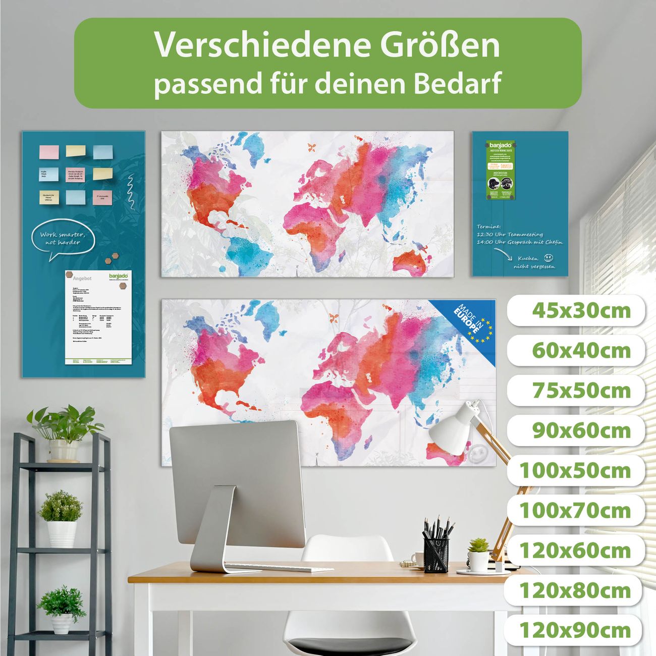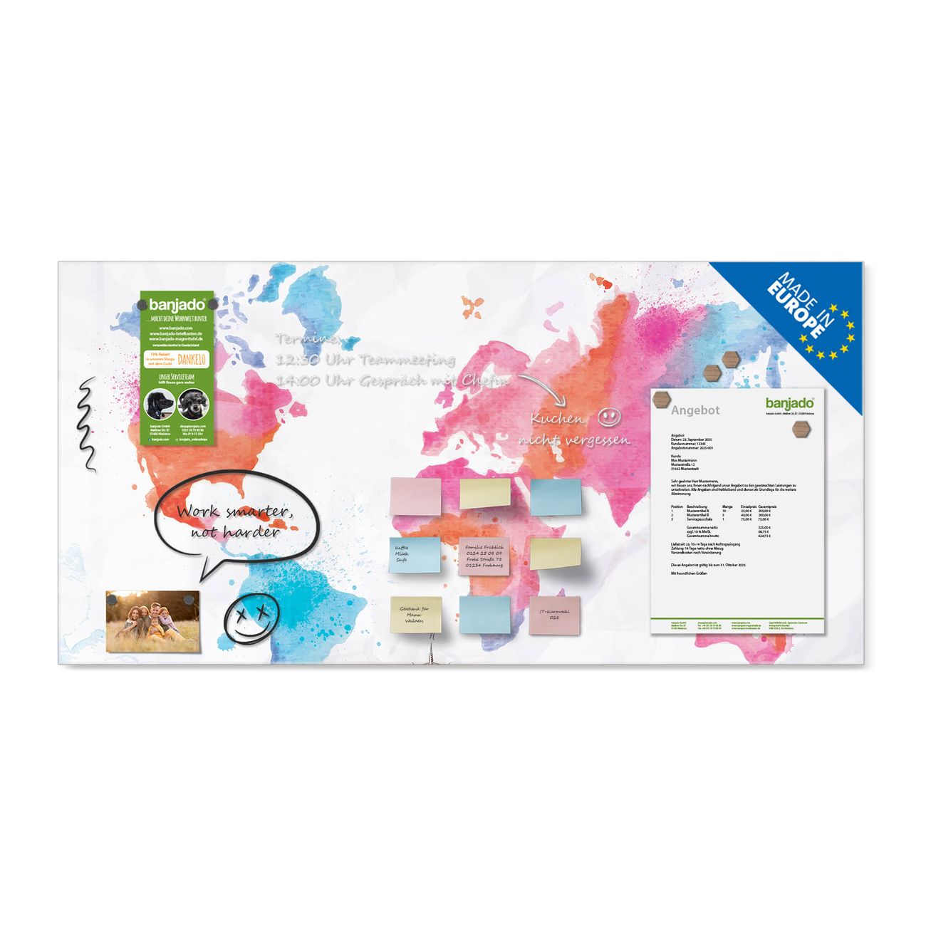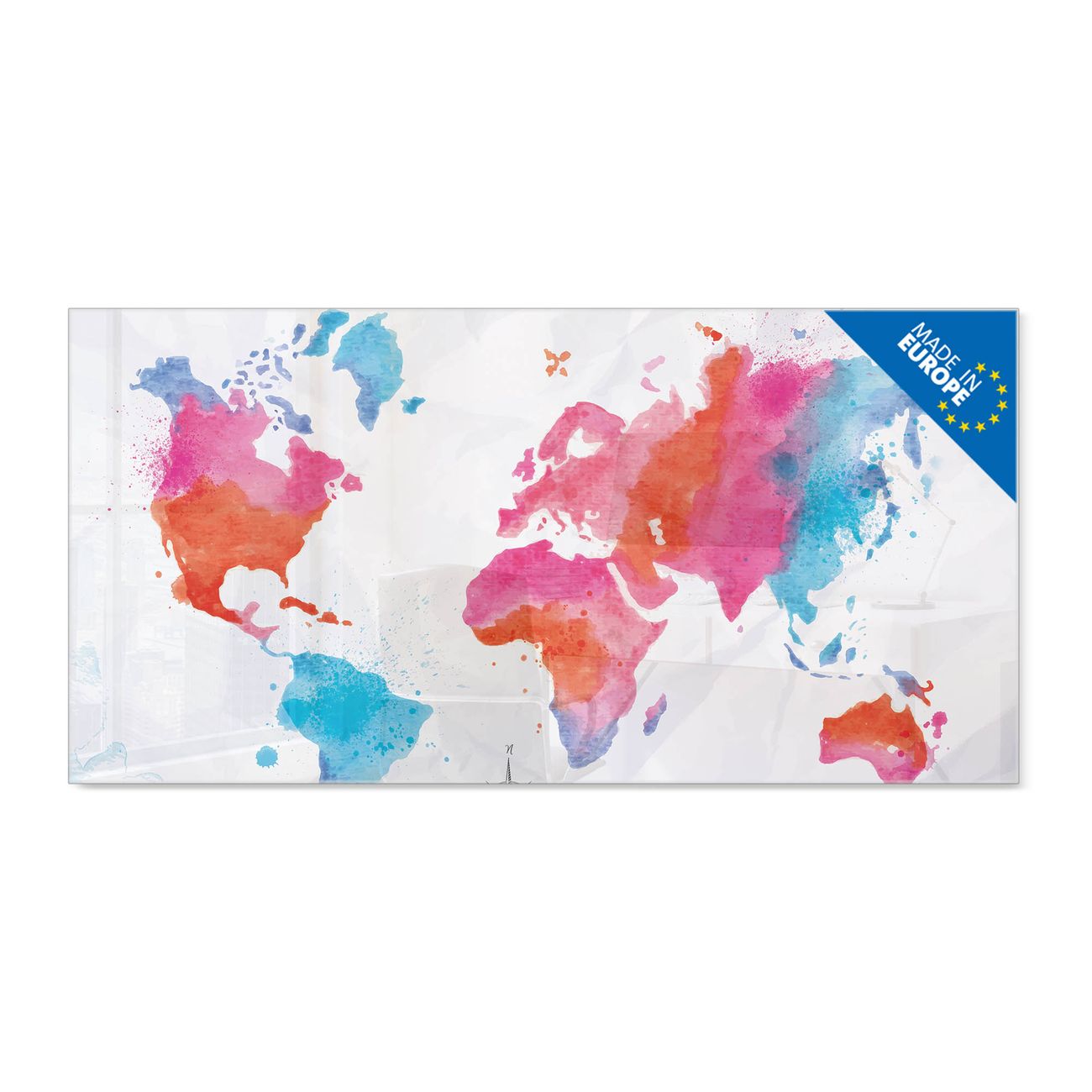 Glas Magnettafel im Querformat Motiv Weltkarte pastell