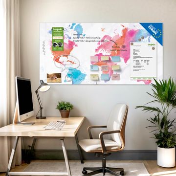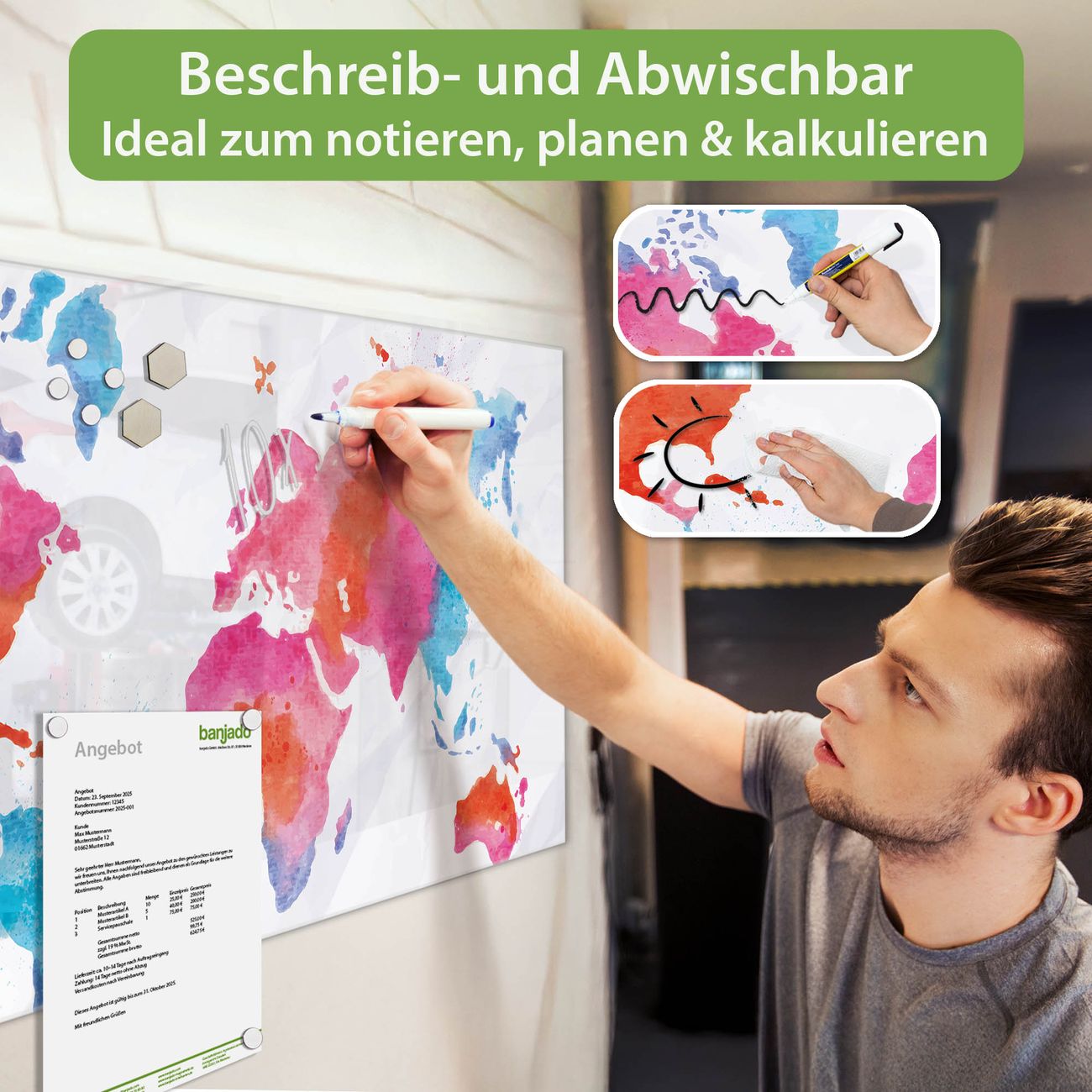 Die banjado Glas Magnettafel mit dem Motiv Motiv Weltkarte pastell verbindet Funktionalität mit Stil. Sie ersetzt das Zettelchaos durch klare Strukturen und bringt dabei eine warme, natürliche Atmosphäre in Ihr Zuhause. Ob im Büro, in der Küche oder im Eingangsbereich - dieses Design-Board zieht Blicke an und sorgt für Ordnung mit Charakter.