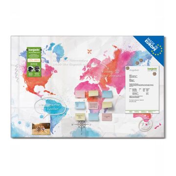 Glas Magnettafel im Querformat Motiv Weltkarte pastell