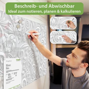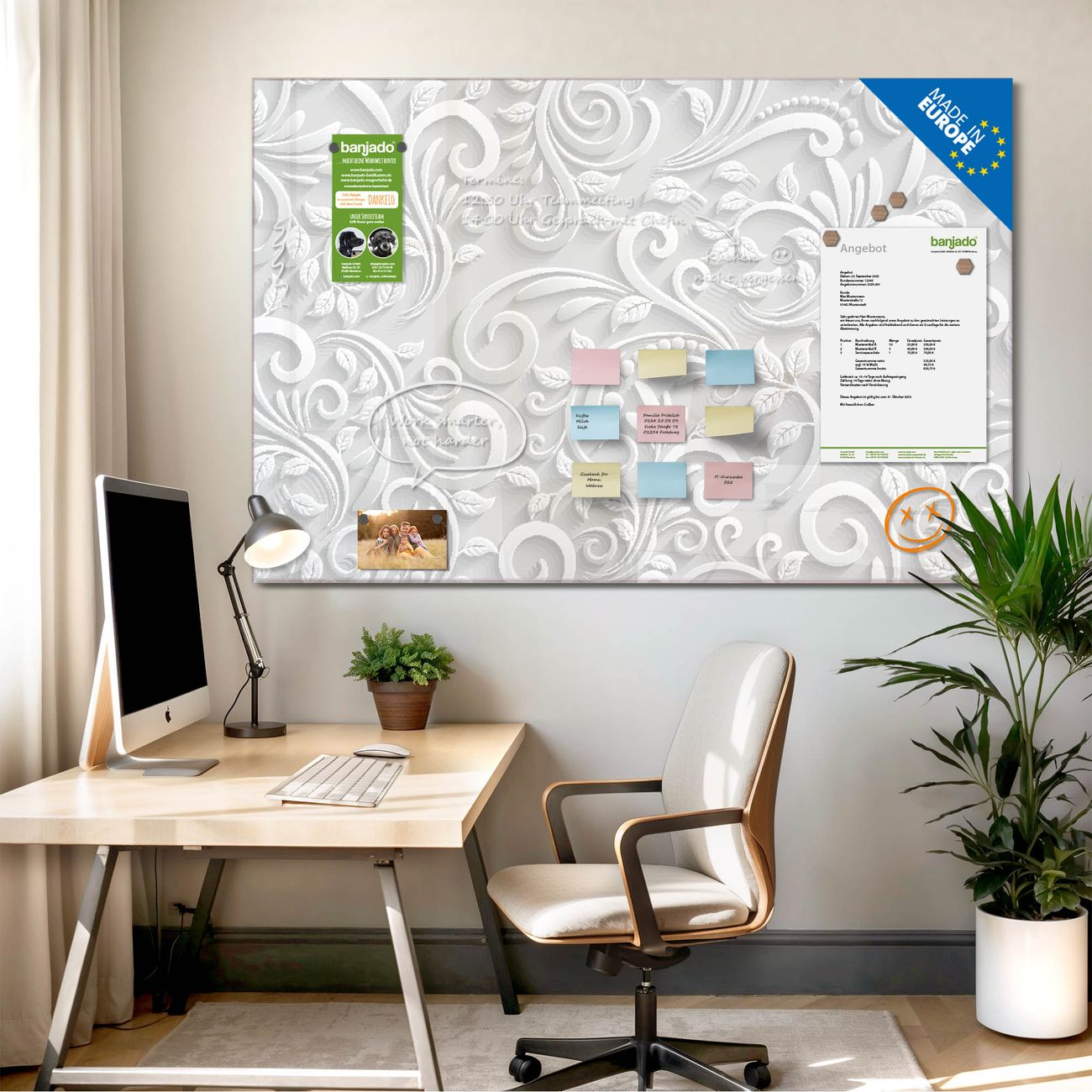 Die banjado Glas Magnettafel mit dem Motiv Motiv White Swirl verbindet Funktionalität mit Stil. Sie ersetzt das Zettelchaos durch klare Strukturen und bringt dabei eine warme, natürliche Atmosphäre in Ihr Zuhause. Ob im Büro, in der Küche oder im Eingangsbereich - dieses Design-Board zieht Blicke an und sorgt für Ordnung mit Charakter.