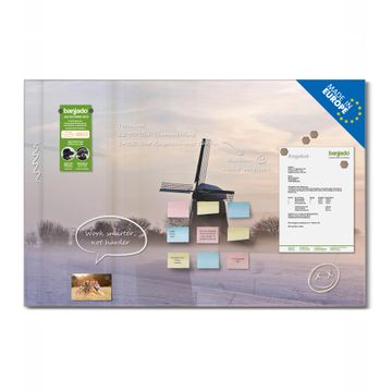 Material: 4mm Sicherheitsglas mit Metallrückwand Eigenschaften: beschreibbar, magnetisch, kratzfest Maße: 120x80x0,6cm, 14,40kg schwer Motiv Nummer 12988 Windmühle im Winter Zubehör: inklusive 4 Neodym-Magnete