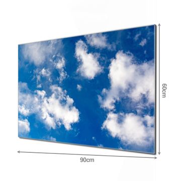 Material: 4mm Sicherheitsglas mit Metallrückwand Eigenschaften: beschreibbar, magnetisch, kratzfest Maße: 90x60x0,6cm, 8,10kg schwer Motiv Nummer 12831 Wolken 2 Zubehör: inklusive 4 Neodym-Magnete