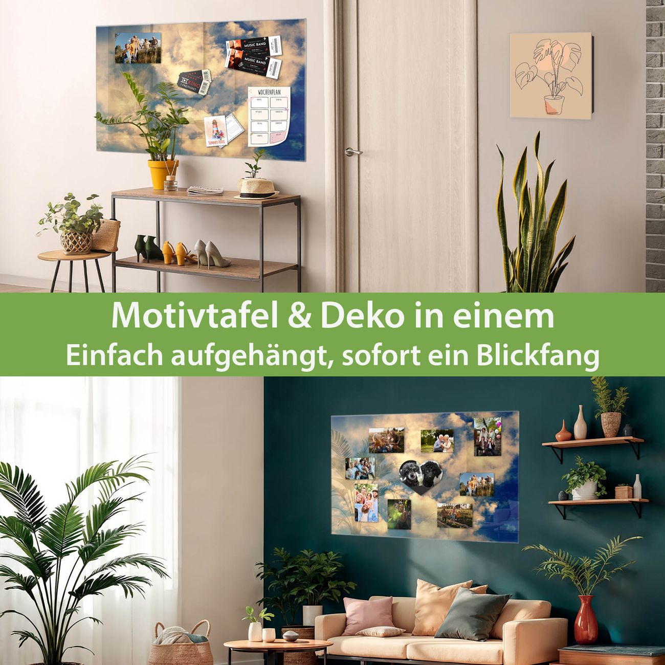 Die banjado Glas Magnettafel mit dem Motiv Motiv Wolken 3 verbindet Funktionalität mit Stil. Sie ersetzt das Zettelchaos durch klare Strukturen und bringt dabei eine warme, natürliche Atmosphäre in Ihr Zuhause. Ob im Büro, in der Küche oder im Eingangsbereich - dieses Design-Board zieht Blicke an und sorgt für Ordnung mit Charakter.
