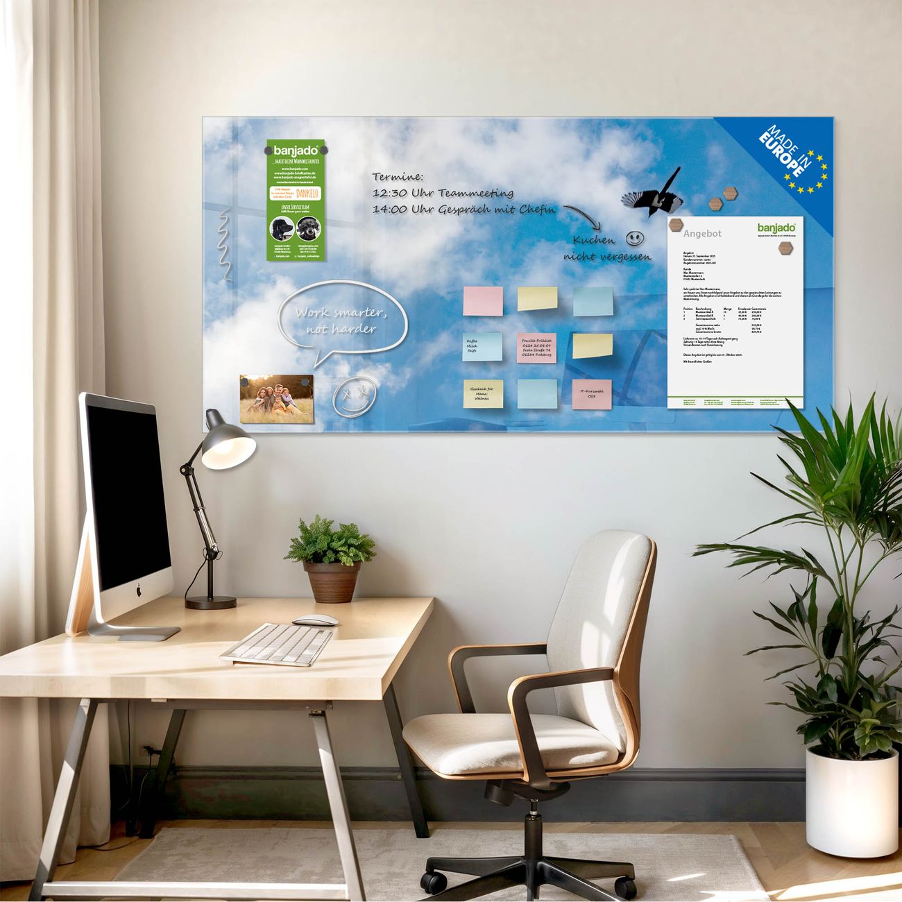 Die banjado Glas Magnettafel mit dem Motiv Motiv Wolken 4 verbindet Funktionalität mit Stil. Sie ersetzt das Zettelchaos durch klare Strukturen und bringt dabei eine warme, natürliche Atmosphäre in Ihr Zuhause. Ob im Büro, in der Küche oder im Eingangsbereich - dieses Design-Board zieht Blicke an und sorgt für Ordnung mit Charakter.