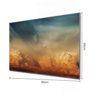 Material: 4mm Sicherheitsglas mit Metallrückwand Eigenschaften: beschreibbar, magnetisch, kratzfest Maße: 90x60x0,6cm, 8,10kg schwer Motiv Nummer 12846 Wolken in der Dämmerung Zubehör: inklusive 4 Neodym-Magnete