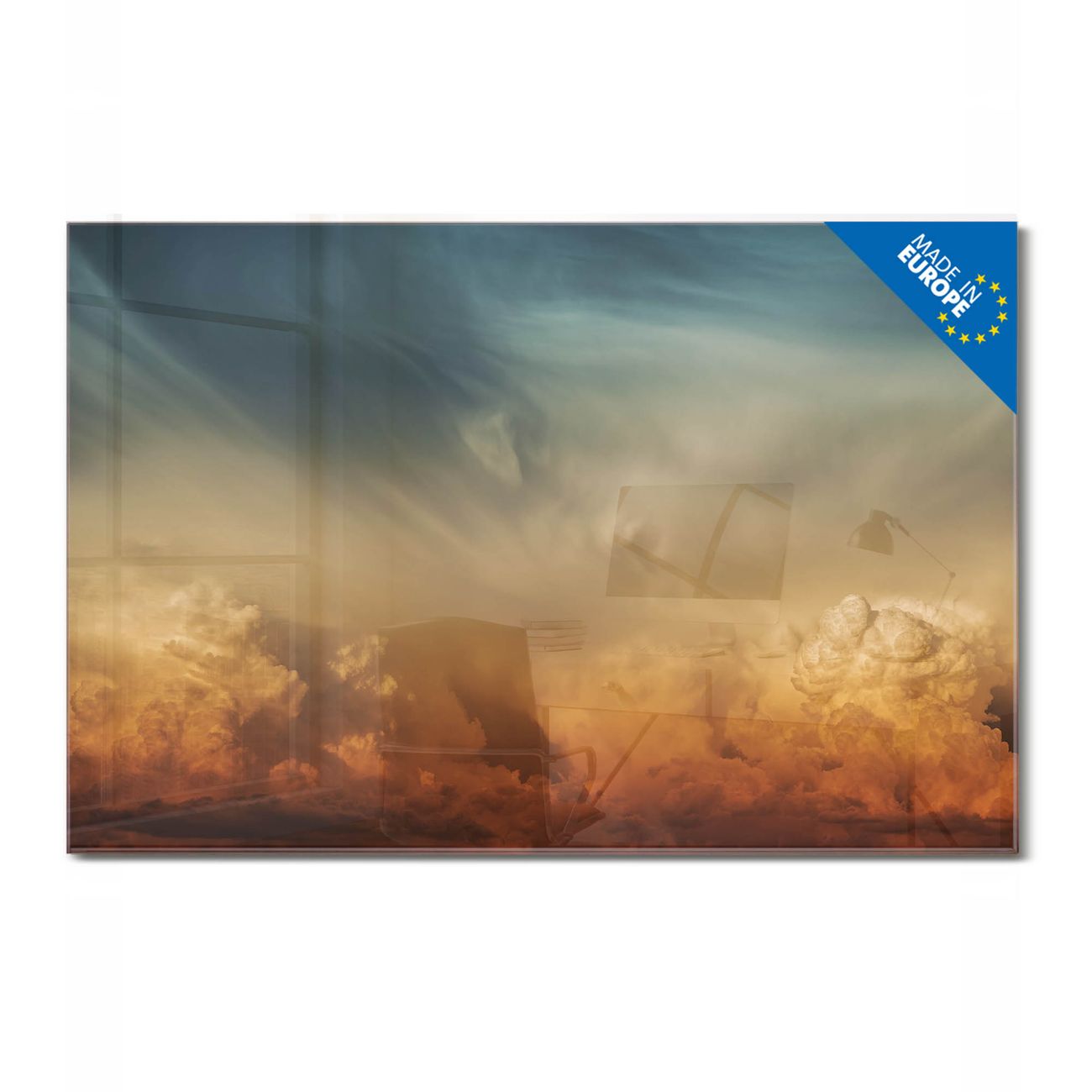 Material: 4mm Sicherheitsglas mit Metallrückwand Eigenschaften: beschreibbar, magnetisch, kratzfest Maße: 45x30x0,6cm, 2,03kg schwer Motiv Nummer 12846 Wolken in der Dämmerung Zubehör: inklusive 4 Neodym-Magnete