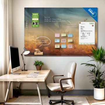 Die banjado Glas Magnettafel mit dem Motiv Motiv Wolken in der Dämmerung verbindet Funktionalität mit Stil. Sie ersetzt das Zettelchaos durch klare Strukturen und bringt dabei eine warme, natürliche Atmosphäre in Ihr Zuhause. Ob im Büro, in der Küche oder im Eingangsbereich - dieses Design-Board zieht Blicke an und sorgt für Ordnung mit Charakter.