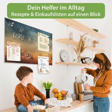 Auf der glatten Glasoberfläche lassen sich Termine, Rezepte oder Notizen ganz einfach mit Kreidestiften festhalten und rückstandslos entfernen. Starke Neodym-Magnete halten Ihre wichtigsten Erinnerungen sicher an Ort und Stelle. So entsteht Ihre ganz persönliche Ideenwand - jeden Tag neu.