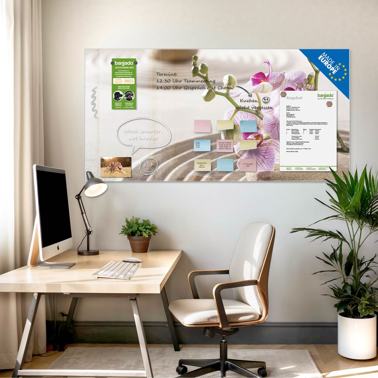 Jede Glas Magnettafel wird in unserer Werkstatt von Hand gefertigt und sorgfältig geprüft. So erhalten Sie ein echtes Qualitätsprodukt, das Funktion und Ästhetik perfekt vereint.?? Warum banjado?
