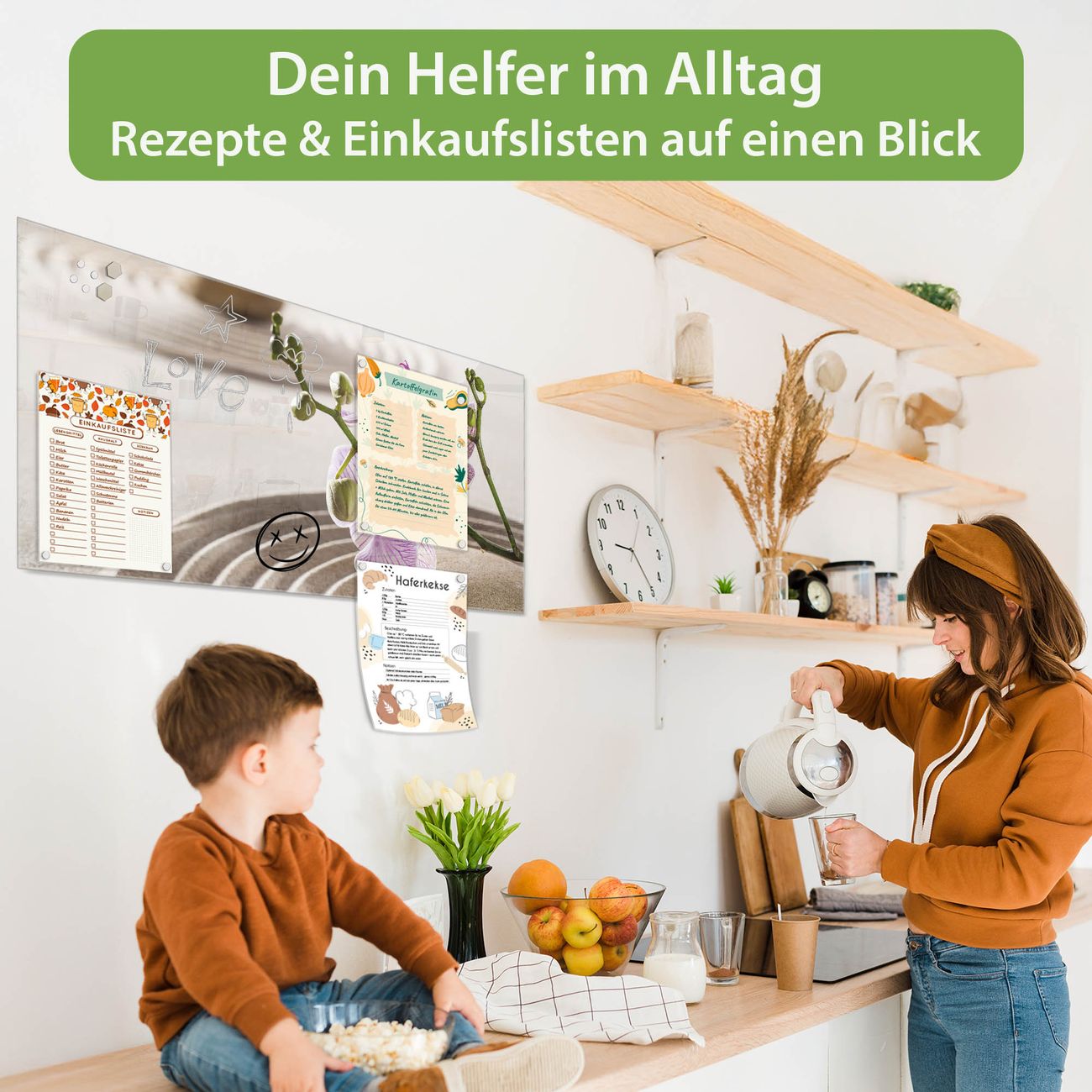 Ein Stück Design, das Ihren Alltag organisiert. Schreiben, heften, inspirieren - alles an einem Ort. Qualität, die man spürt. Montage leicht gemacht. Handwerk mit Herz - veredelt in Sachsen. Einzigartiges Design mit Motiv Motiv Zen Relax Beschreibbare Glasoberfläche, leicht zu reinigen Starke Magnetkraft durch Stahlrückwand Inklusive 4 Neodym-Magneten Flexible Montageoptionen Handveredelt in Sachsen - Qualität, die bleibt