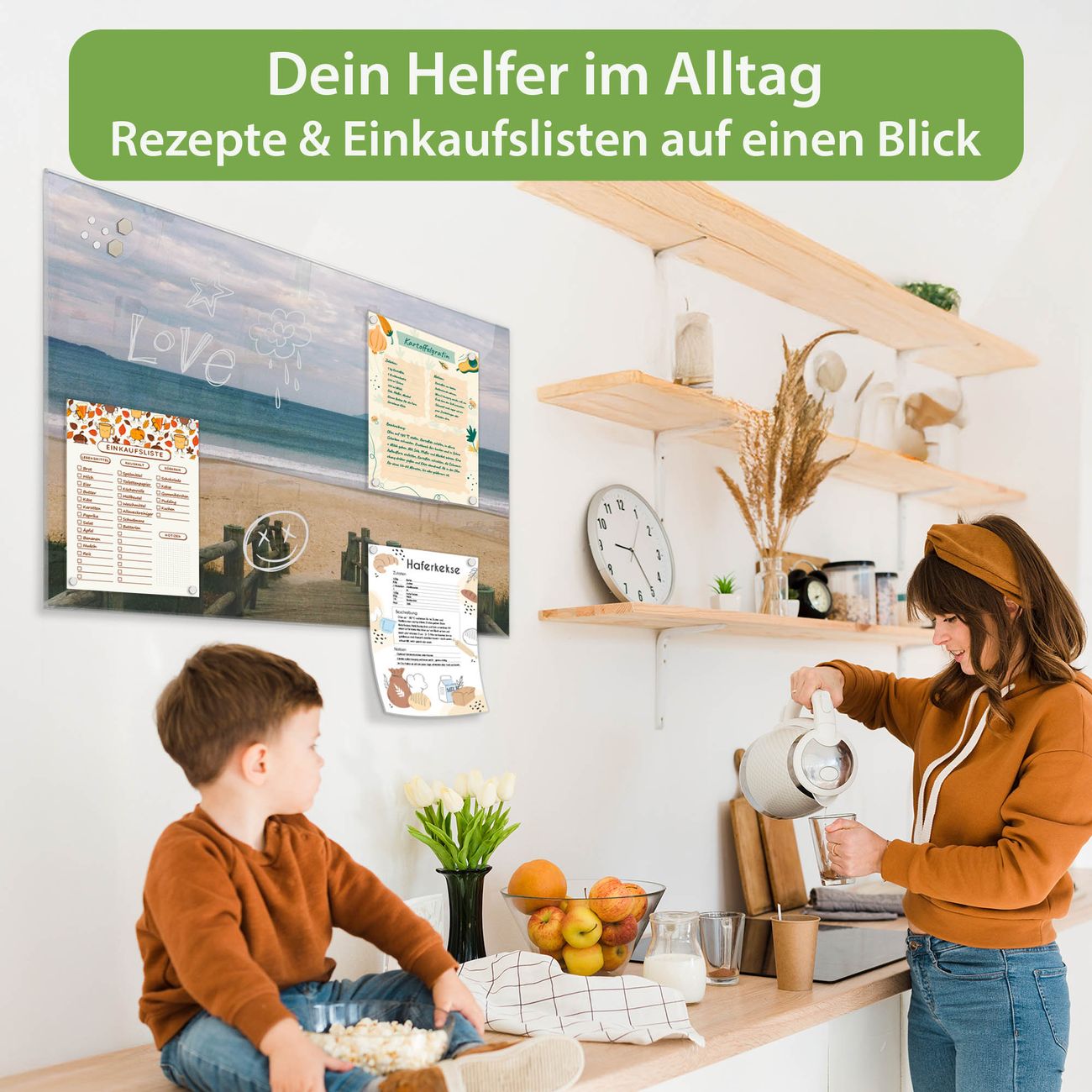 Ein Stück Design, das Ihren Alltag organisiert. Schreiben, heften, inspirieren - alles an einem Ort. Qualität, die man spürt. Montage leicht gemacht. Handwerk mit Herz - veredelt in Sachsen. Einzigartiges Design mit Motiv Motiv Zum Strand Beschreibbare Glasoberfläche, leicht zu reinigen Starke Magnetkraft durch Stahlrückwand Inklusive 4 Neodym-Magneten Flexible Montageoptionen Handveredelt in Sachsen - Qualität, die bleibt