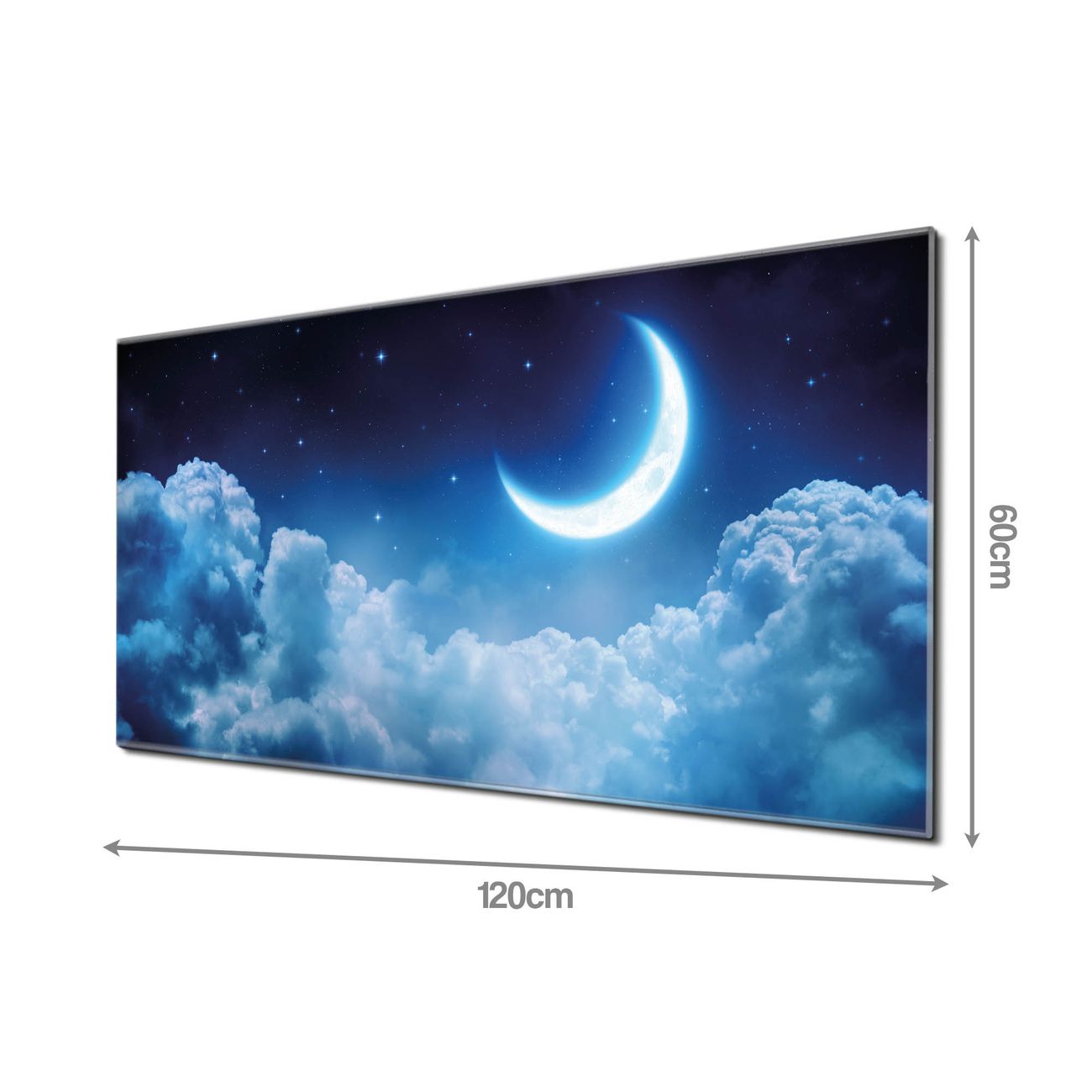 Material  4mm Sicherheitsglas mit Metallrückwand Eigenschaften  beschreibbar, magnetisch, kratzfest Maße  120x60x0,6cm, 10,80kg schwer Motiv  Nummer 12849 zunehmender Mond Zubehör  inklusive 4 Neodym-Magnete