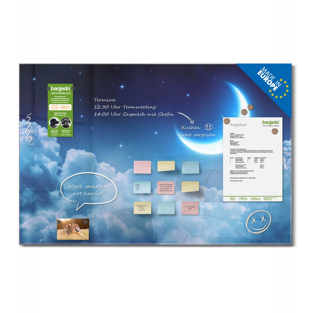 Glas Magnettafel im Querformat Motiv zunehmender Mond