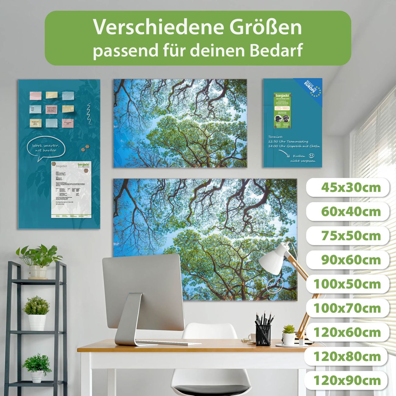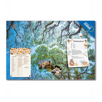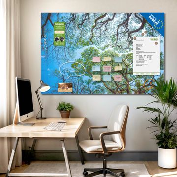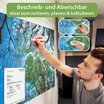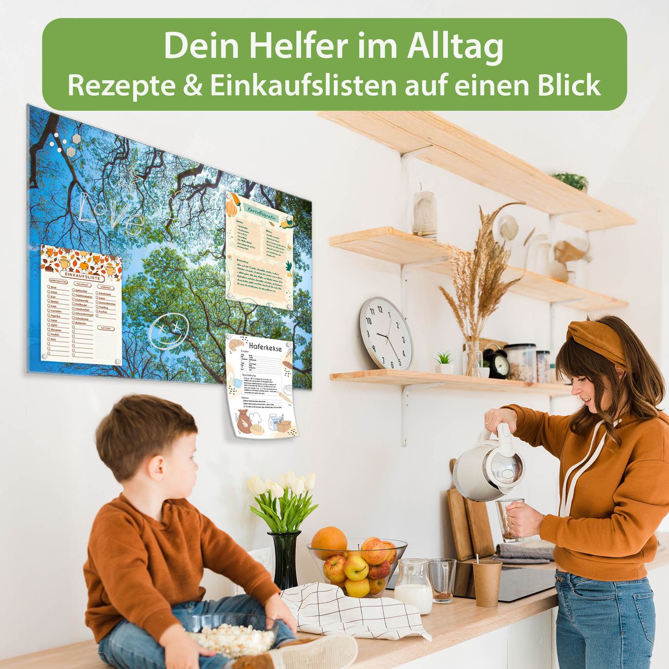 Die banjado Glas Magnettafel mit dem Motiv Motiv Zwischen Bäumen 2 verbindet Funktionalität mit Stil. Sie ersetzt das Zettelchaos durch klare Strukturen und bringt dabei eine warme, natürliche Atmosphäre in Ihr Zuhause. Ob im Büro, in der Küche oder im Eingangsbereich - dieses Design-Board zieht Blicke an und sorgt für Ordnung mit Charakter.