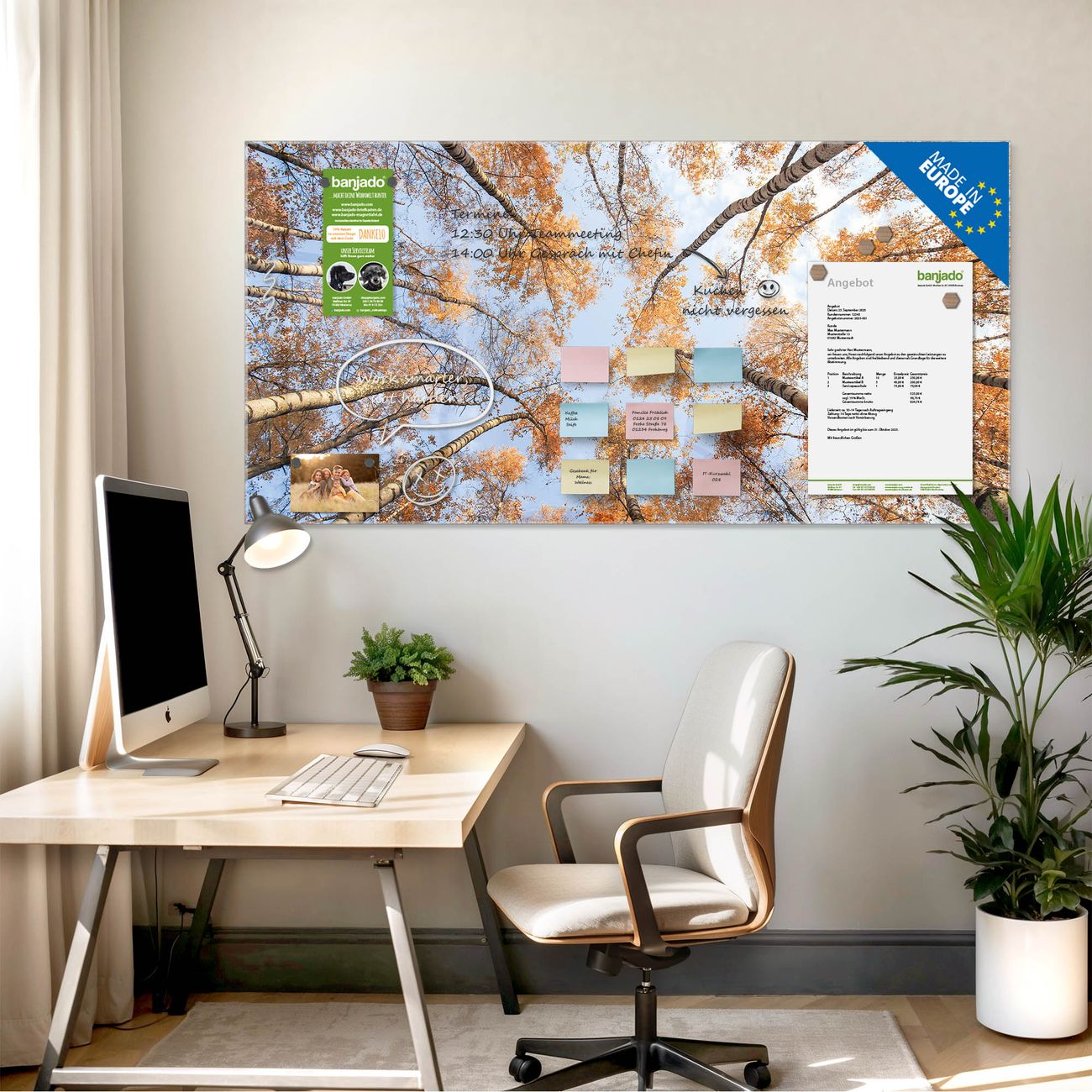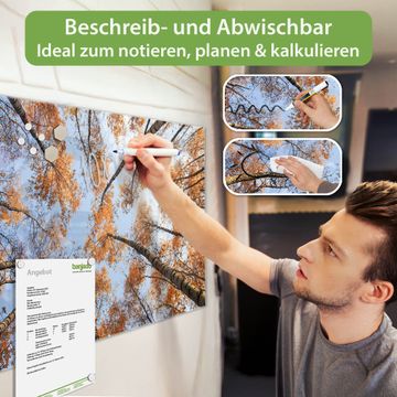 Die banjado Glas Magnettafel mit dem Motiv Motiv Zwischen Bäumen 4 verbindet Funktionalität mit Stil. Sie ersetzt das Zettelchaos durch klare Strukturen und bringt dabei eine warme, natürliche Atmosphäre in Ihr Zuhause. Ob im Büro, in der Küche oder im Eingangsbereich - dieses Design-Board zieht Blicke an und sorgt für Ordnung mit Charakter.