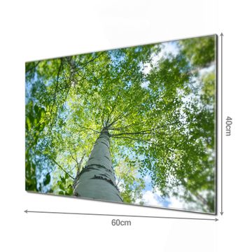 Material  4mm Sicherheitsglas mit Metallrückwand Eigenschaften  beschreibbar, magnetisch, kratzfest Maße  60x40x0,6cm, 3,6kg schwer Motiv  Nummer 12877 Zwischen Bäumen 5 Zubehör  inklusive 4 Neodym-Magnete