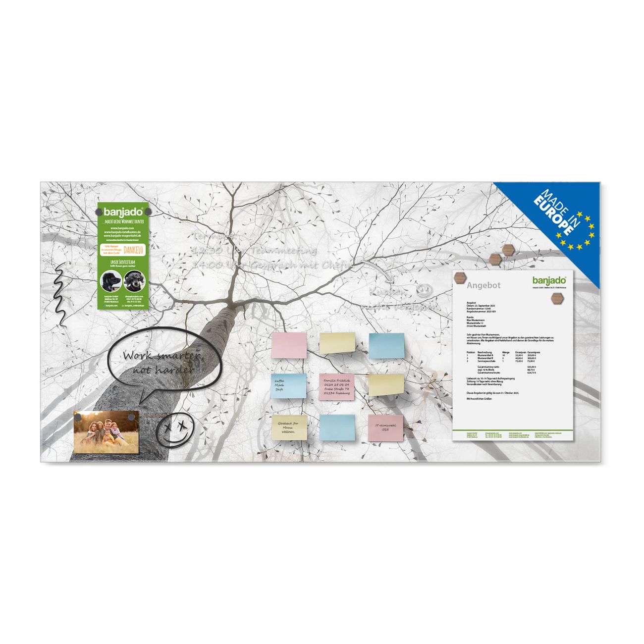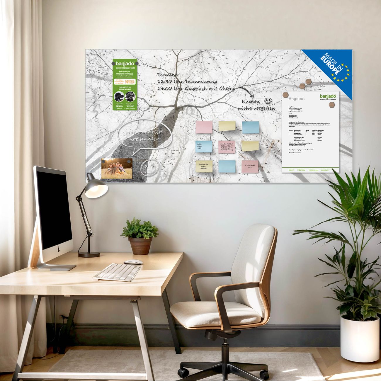 Die banjado Glas Magnettafel mit dem Motiv Motiv Zwischen Bäumen 6 verbindet Funktionalität mit Stil. Sie ersetzt das Zettelchaos durch klare Strukturen und bringt dabei eine warme, natürliche Atmosphäre in Ihr Zuhause. Ob im Büro, in der Küche oder im Eingangsbereich - dieses Design-Board zieht Blicke an und sorgt für Ordnung mit Charakter.