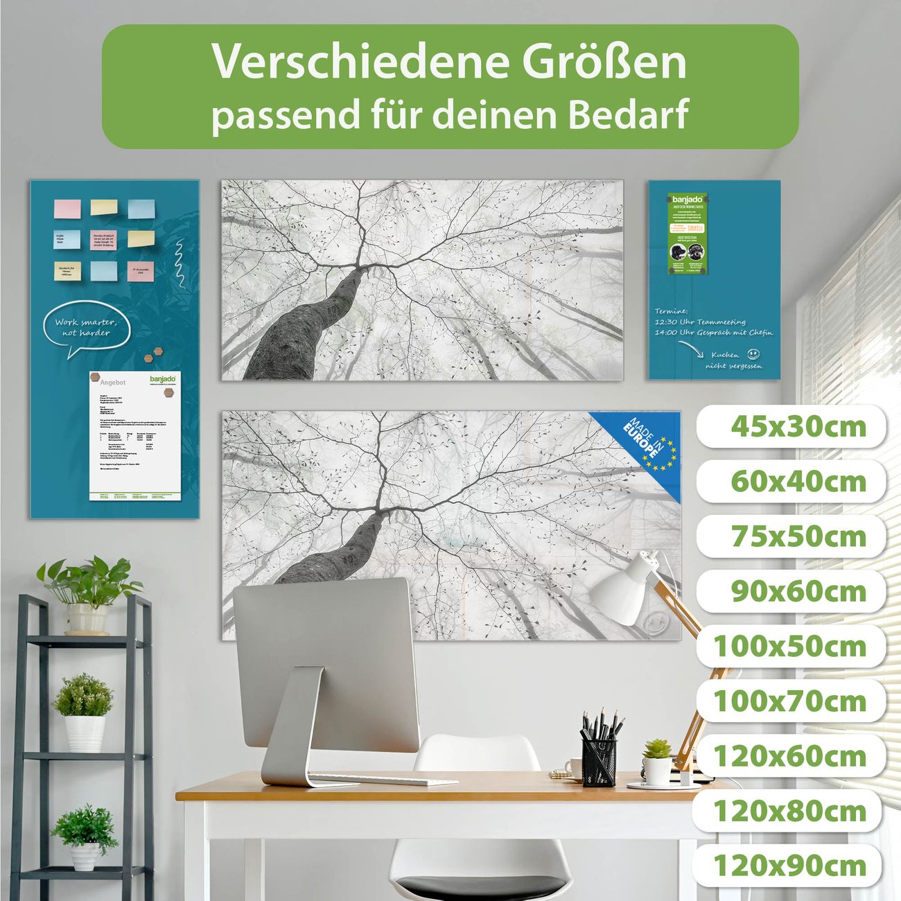 Material: 4mm Sicherheitsglas mit Metallrückwand Eigenschaften: beschreibbar, magnetisch, kratzfest Maße: 120x60x0,6cm, 10,80kg schwer Motiv Nummer 12878 Zwischen Bäumen 6 Zubehör: inklusive 4 Neodym-Magnete