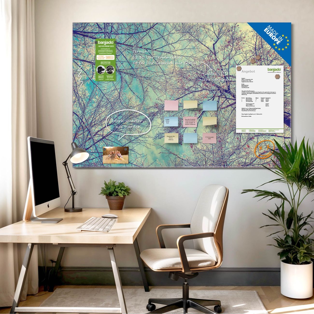 Die banjado Glas Magnettafel mit dem Motiv Motiv Zwischen Bäumen 8 verbindet Funktionalität mit Stil. Sie ersetzt das Zettelchaos durch klare Strukturen und bringt dabei eine warme, natürliche Atmosphäre in Ihr Zuhause. Ob im Büro, in der Küche oder im Eingangsbereich - dieses Design-Board zieht Blicke an und sorgt für Ordnung mit Charakter.