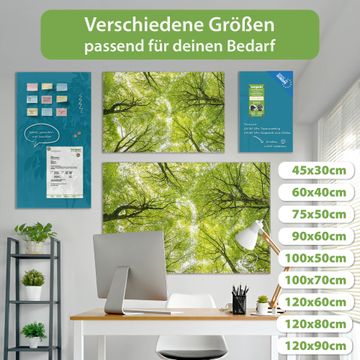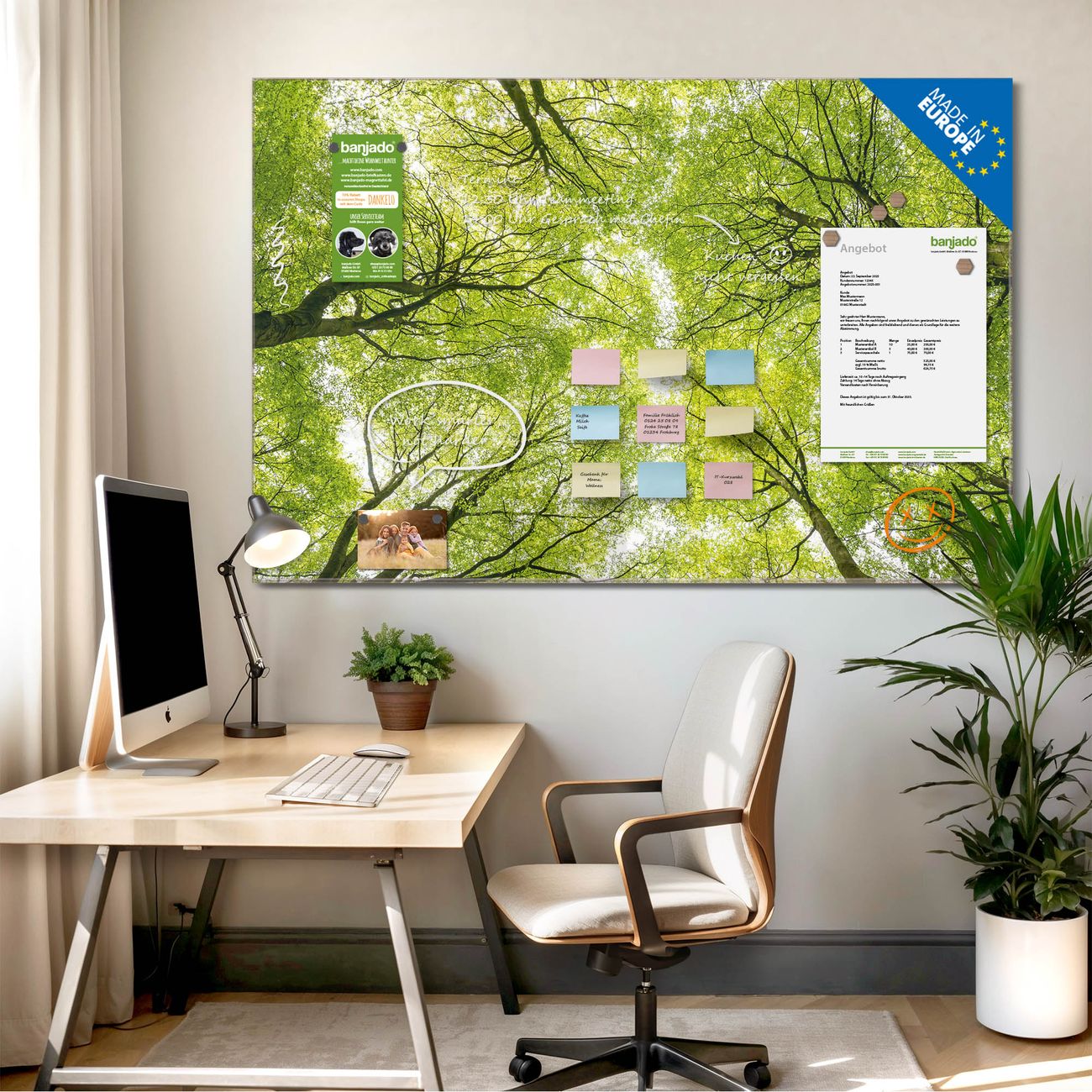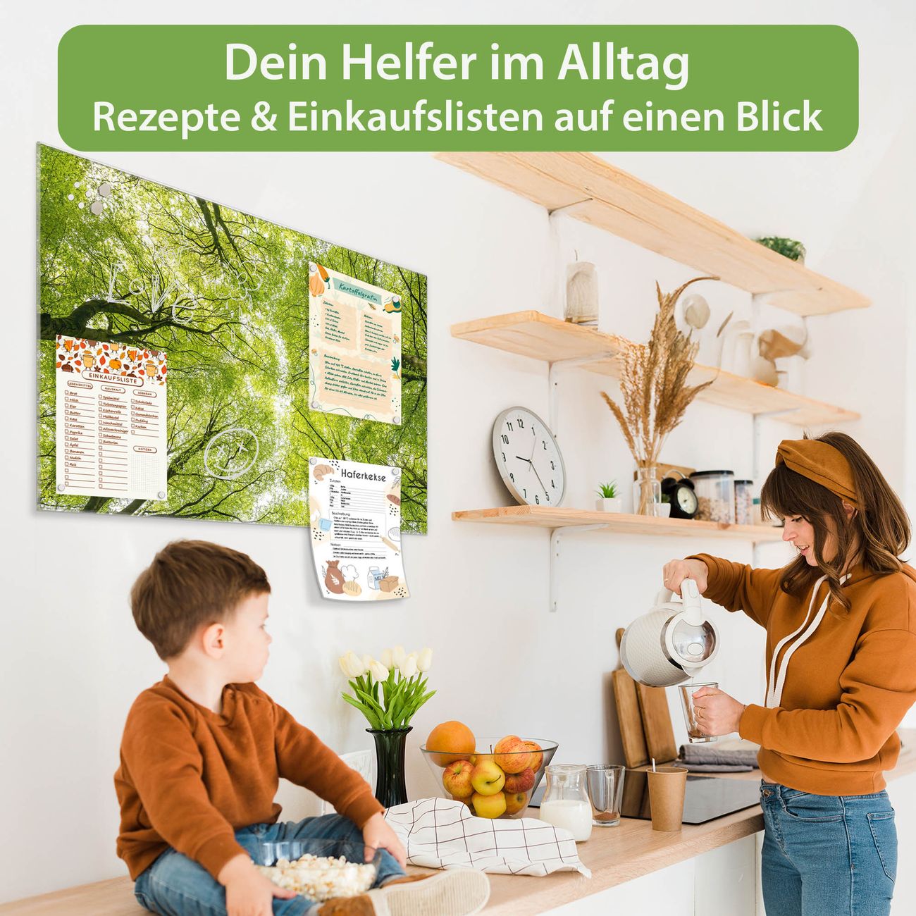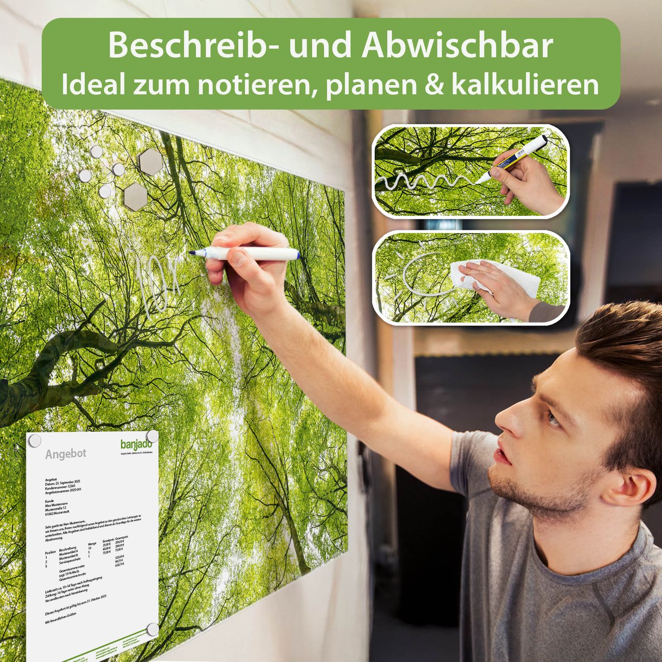 Die banjado Glas Magnettafel mit dem Motiv Motiv Zwischen Bäumen verbindet Funktionalität mit Stil. Sie ersetzt das Zettelchaos durch klare Strukturen und bringt dabei eine warme, natürliche Atmosphäre in Ihr Zuhause. Ob im Büro, in der Küche oder im Eingangsbereich - dieses Design-Board zieht Blicke an und sorgt für Ordnung mit Charakter.