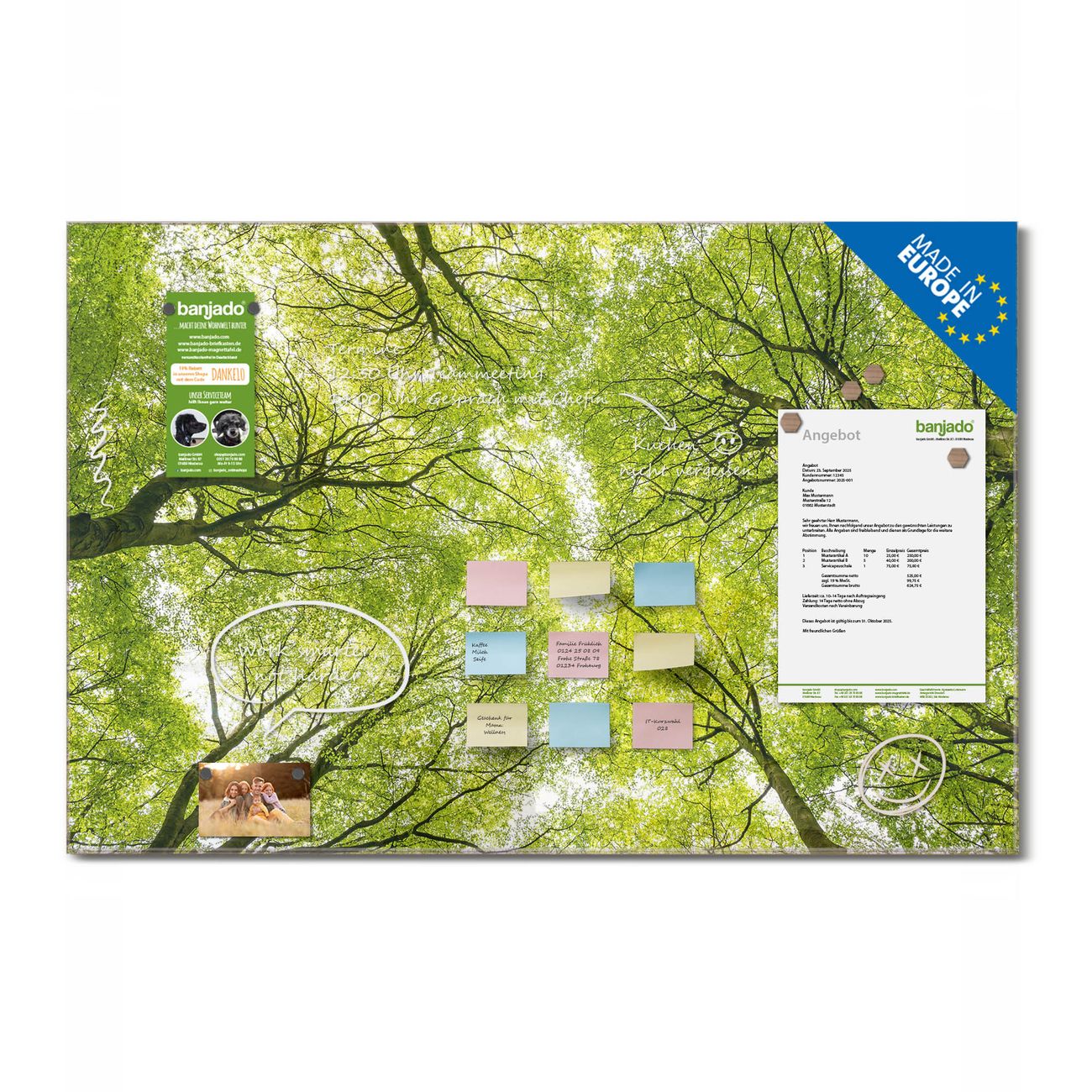 Die banjado Glas Magnettafel mit dem Motiv Motiv Zwischen Bäumen verbindet Funktionalität mit Stil. Sie ersetzt das Zettelchaos durch klare Strukturen und bringt dabei eine warme, natürliche Atmosphäre in Ihr Zuhause. Ob im Büro, in der Küche oder im Eingangsbereich - dieses Design-Board zieht Blicke an und sorgt für Ordnung mit Charakter.