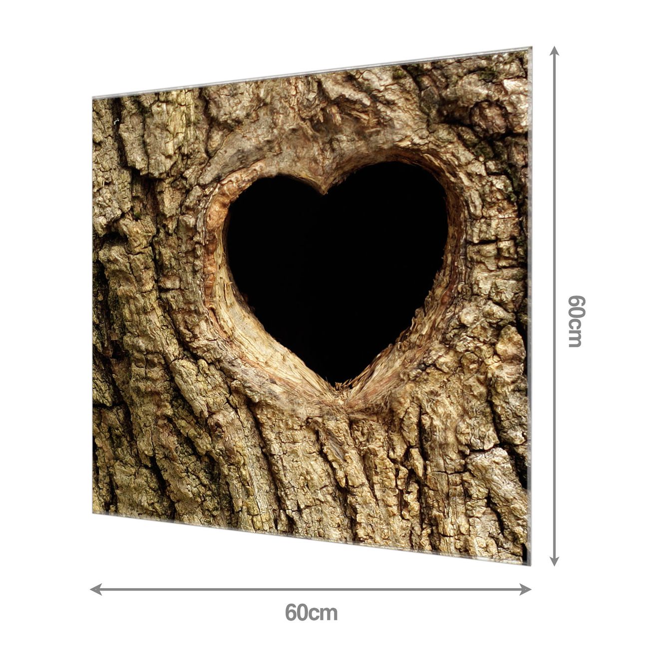 Material: 4mm Sicherheitsglas mit Metallrückwand Eigenschaften: beschreibbar, magnetisch, kratzfest Maße: 60x60x0,6cm, 7,56 kg schwer Motiv Nummer 11422 Baumherz Zubehör: inklusive 4 Neodym-Magnete