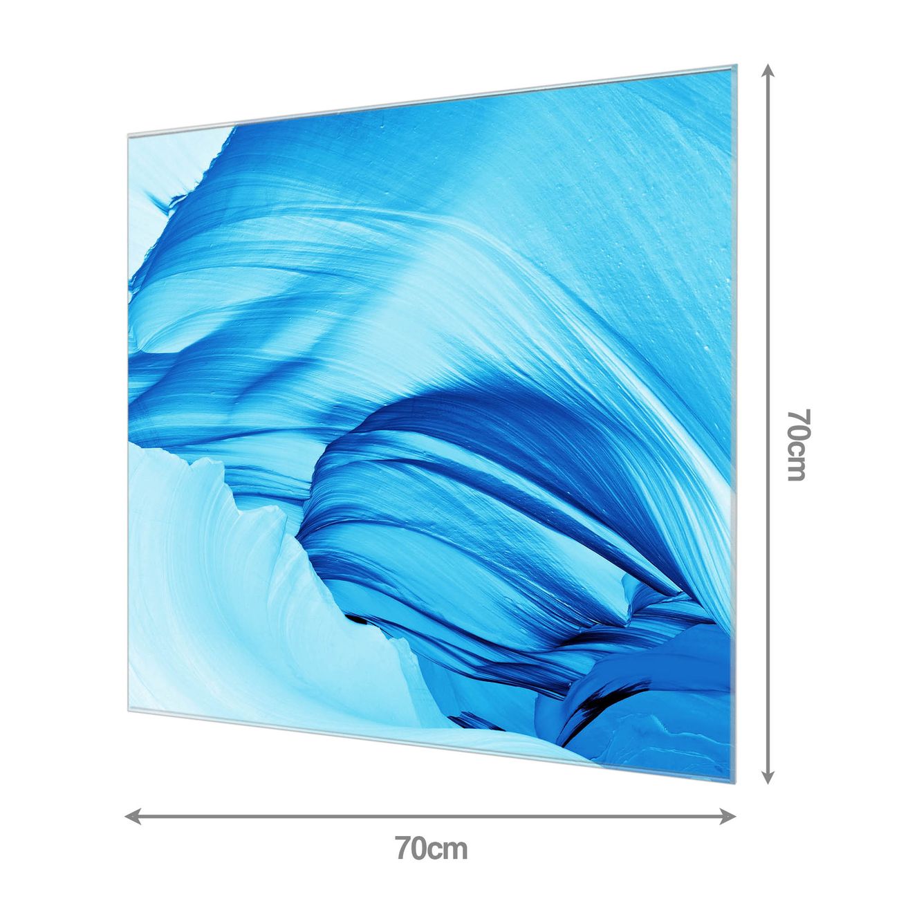 Material: 4mm Sicherheitsglas mit Metallrückwand Eigenschaften: beschreibbar, magnetisch, kratzfest Maße: 70x70x0,6cm, 10,50 kg schwer Motiv Nummer 12048 Ewiges Eis Zubehör: inklusive 4 Neodym-Magnete
