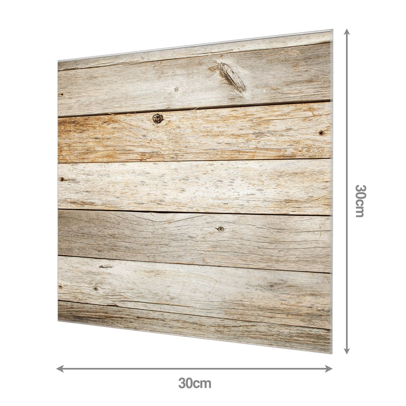 Material: 4mm Sicherheitsglas mit Metallrückwand Eigenschaften: beschreibbar, magnetisch, kratzfest Maße: 30x30x0,6cm, 1,89 kg schwer Motiv Nummer 12172 Graues Holz Zubehör: inklusive 4 Neodym-Magnete