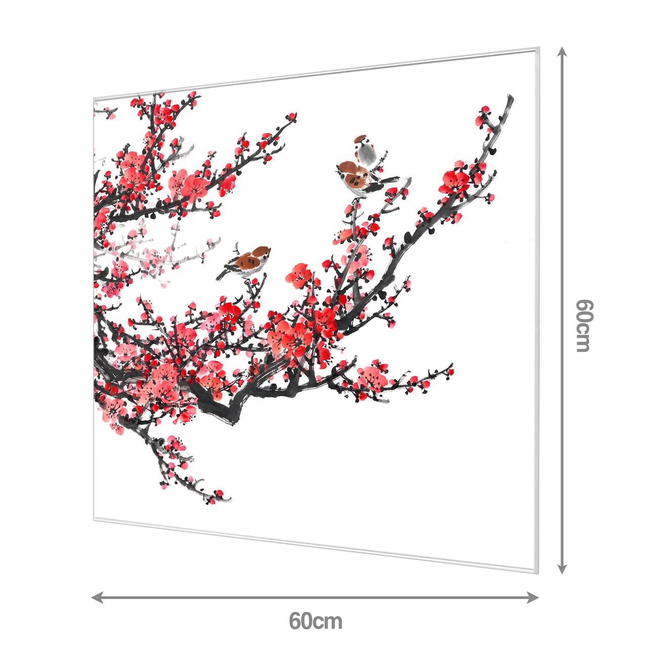 Material: 4mm Sicherheitsglas mit Metallrückwand Eigenschaften: beschreibbar, magnetisch, kratzfest Maße: 60x60x0,6cm, 7,56 kg schwer Motiv Nummer 12041 Japanische Blüten 1 Zubehör: inklusive 4 Neodym-Magnete