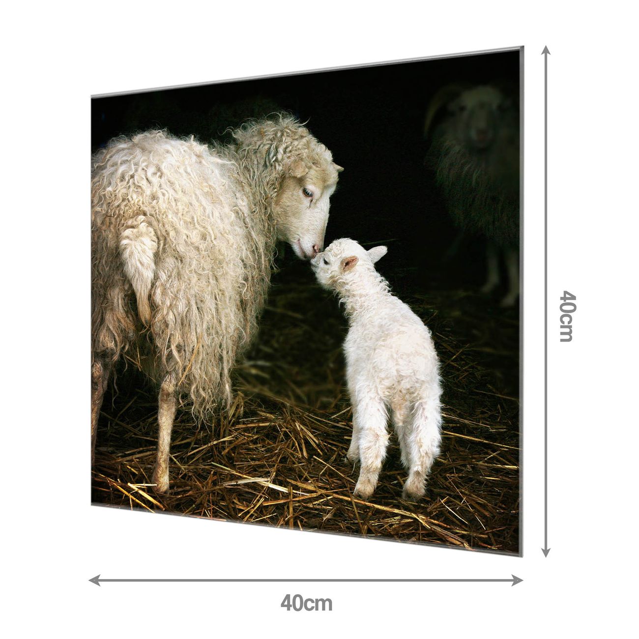 Material: 4mm Sicherheitsglas mit Metallrückwand Eigenschaften: beschreibbar, magnetisch, kratzfest Maße: 40x40x0,6cm, 3,36 kg schwer Motiv Nummer 12806 Schaf Und Lamm Zubehör: inklusive 4 Neodym-Magnete