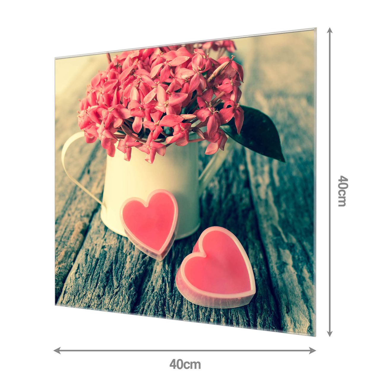 Material: 4mm Sicherheitsglas mit Metallrückwand Eigenschaften: beschreibbar, magnetisch, kratzfest Maße: 40x40x0,6cm, 3,36 kg schwer Motiv Nummer 12123 Valentin Zubehör: inklusive 4 Neodym-Magnete