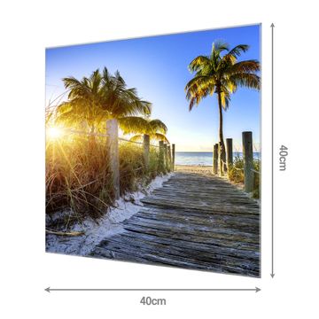 Material: 4mm Sicherheitsglas mit Metallrückwand Eigenschaften: beschreibbar, magnetisch, kratzfest Maße: 40x40x0,6cm, 3,36 kg schwer Motiv Nummer 12050 Weg zum Strand Zubehör: inklusive 4 Neodym-Magnete
