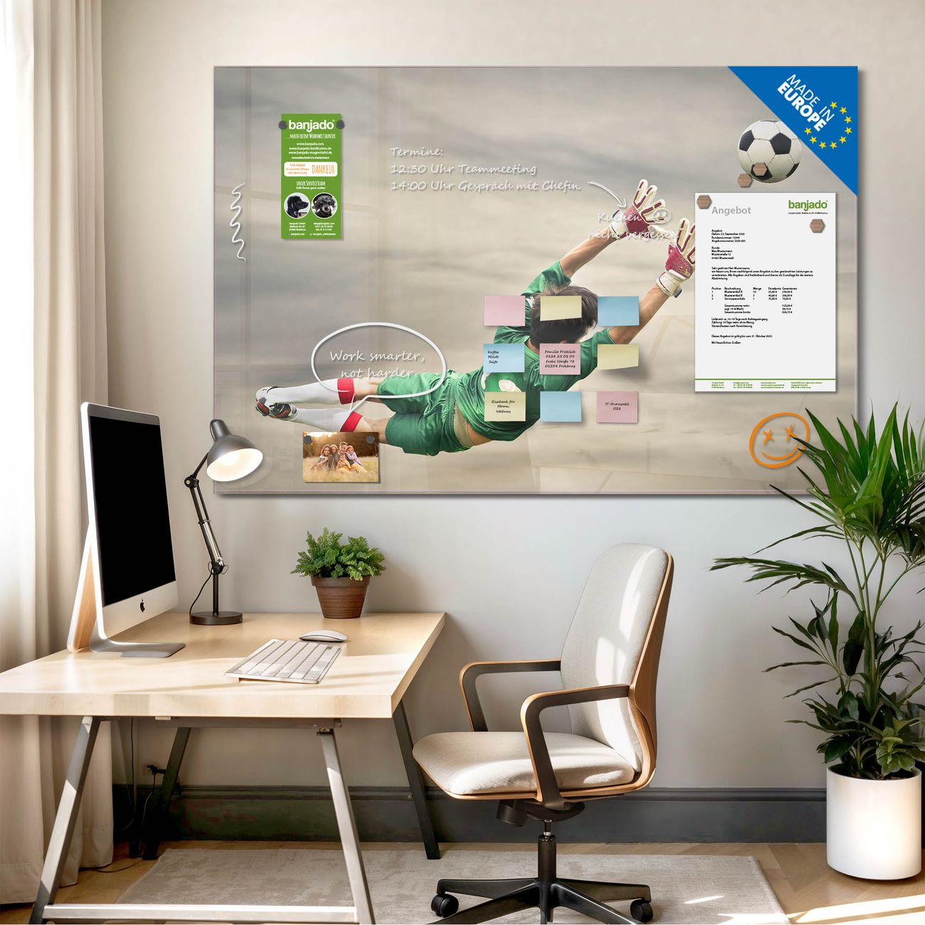 Jede Glas Magnettafel wird in unserer Werkstatt von Hand gefertigt und sorgfältig geprüft. So erhalten Sie ein echtes Qualitätsprodukt, das Funktion und Ästhetik perfekt vereint.?? Warum banjado?