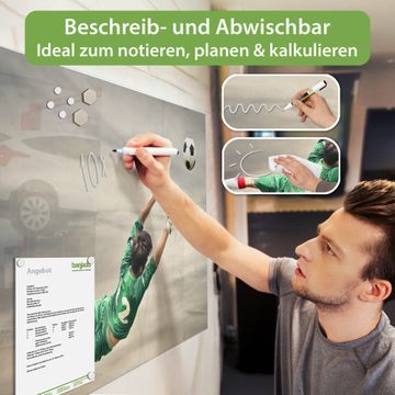 Gefertigt aus gehärtetem Sicherheitsglas mit einer magnetischen Rückwand aus Stahl überzeugt diese Magnettafel durch Stabilität und Langlebigkeit. Die Oberfläche bleibt dauerhaft brillant und pflegeleicht, selbst bei täglicher Nutzung.