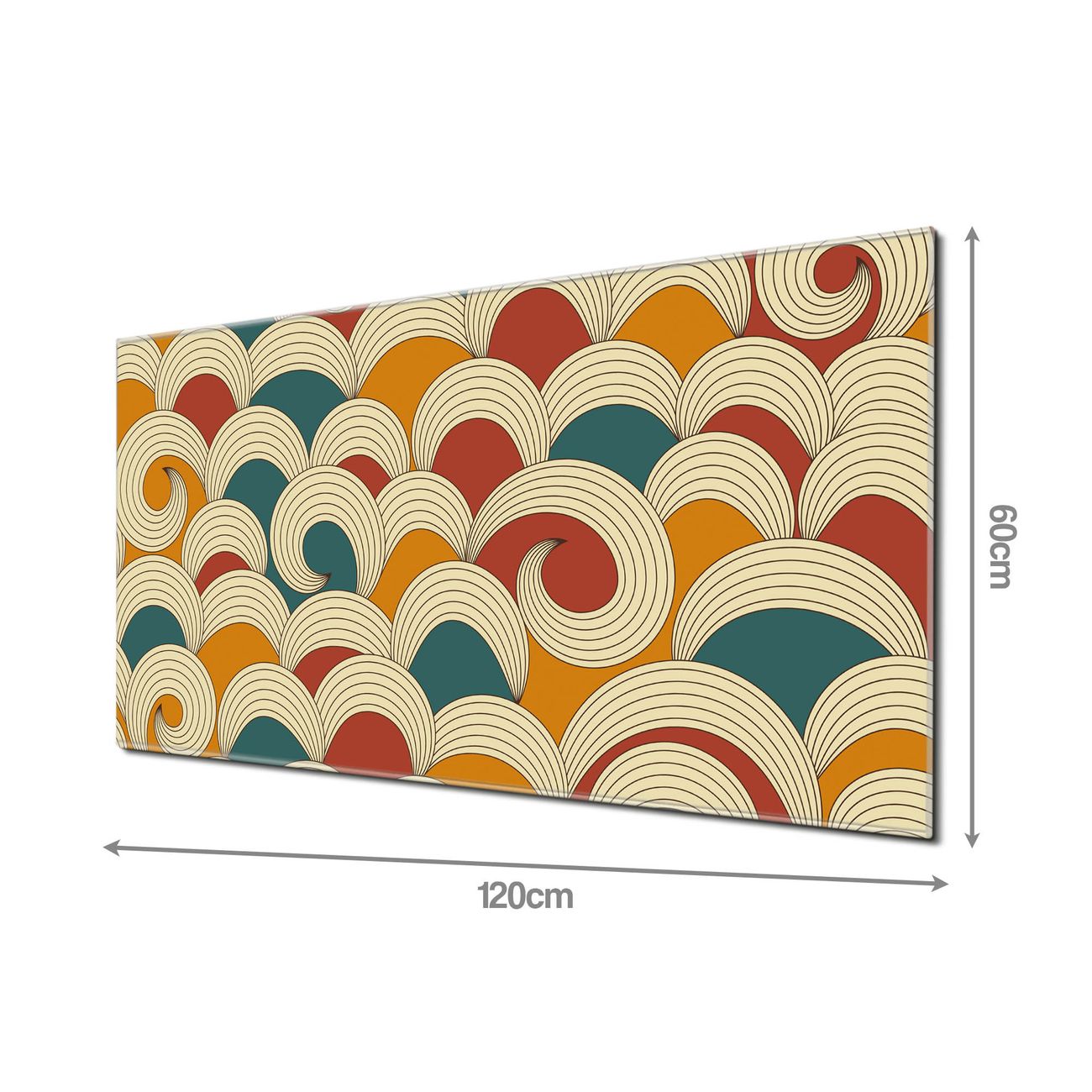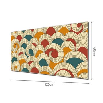 Material: 4mm Sicherheitsglas mit Metallrückwand Eigenschaften: beschreibbar, magnetisch, kratzfest Maße: 120x60x0,6cm, 10,80kg schwer Motiv Nummer 10427 Abstract Waves Zubehör: inklusive 4 Neodym-Magnete
