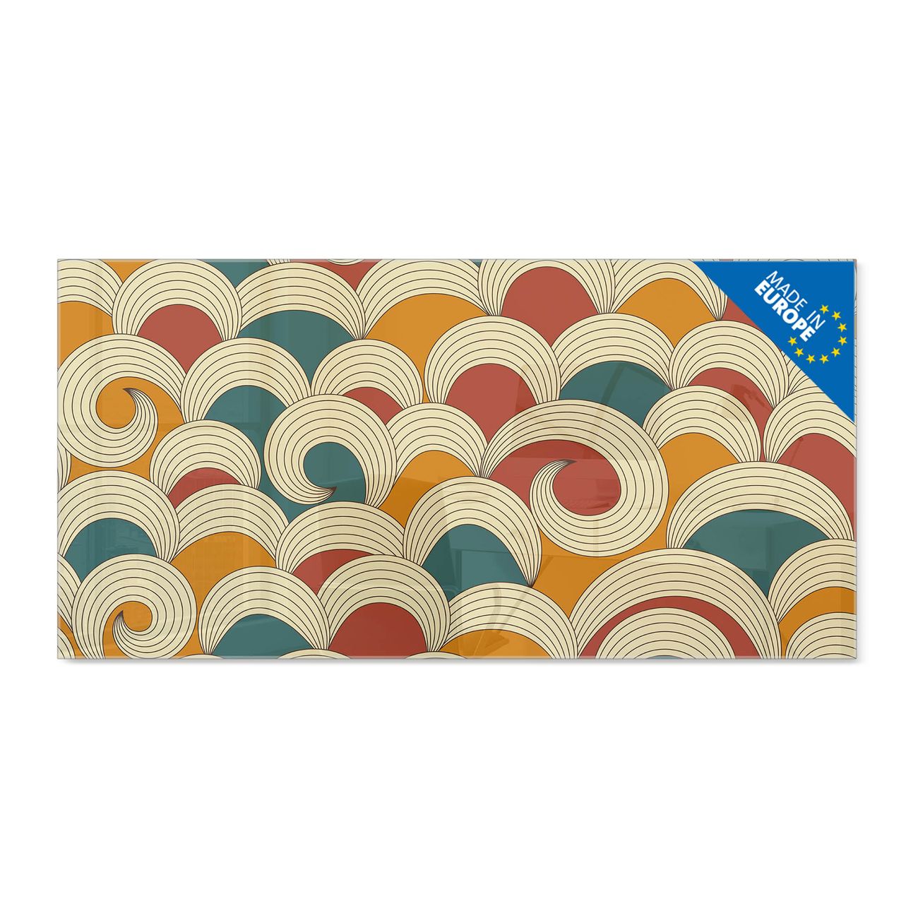 Material: 4mm Sicherheitsglas mit Metallrückwand Eigenschaften: beschreibbar, magnetisch, kratzfest Maße: 120x80x0,6cm, 14,40kg schwer Motiv Nummer 10427 Abstract Waves Zubehör: inklusive 4 Neodym-Magnete