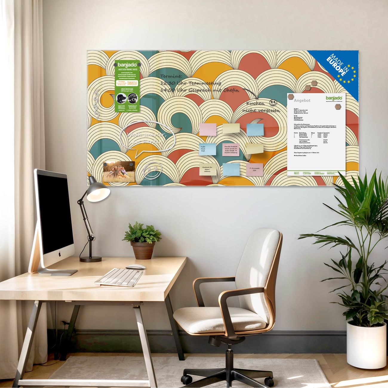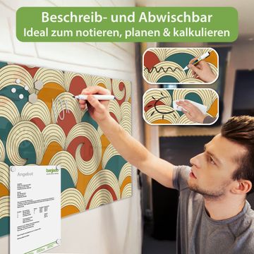 Die banjado Glas Magnettafel mit dem Motiv Motiv Abstract Waves verbindet Funktionalität mit Stil. Sie ersetzt das Zettelchaos durch klare Strukturen und bringt dabei eine warme, natürliche Atmosphäre in Ihr Zuhause. Ob im Büro, in der Küche oder im Eingangsbereich - dieses Design-Board zieht Blicke an und sorgt für Ordnung mit Charakter.
