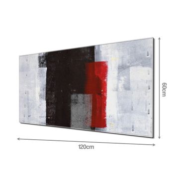 Material: 4mm Sicherheitsglas mit Metallrückwand Eigenschaften: beschreibbar, magnetisch, kratzfest Maße: 120x60x0,6cm, 10,80kg schwer Motiv Nummer 11556 Abstrakt Rot Zubehör: inklusive 4 Neodym-Magnete