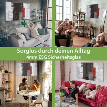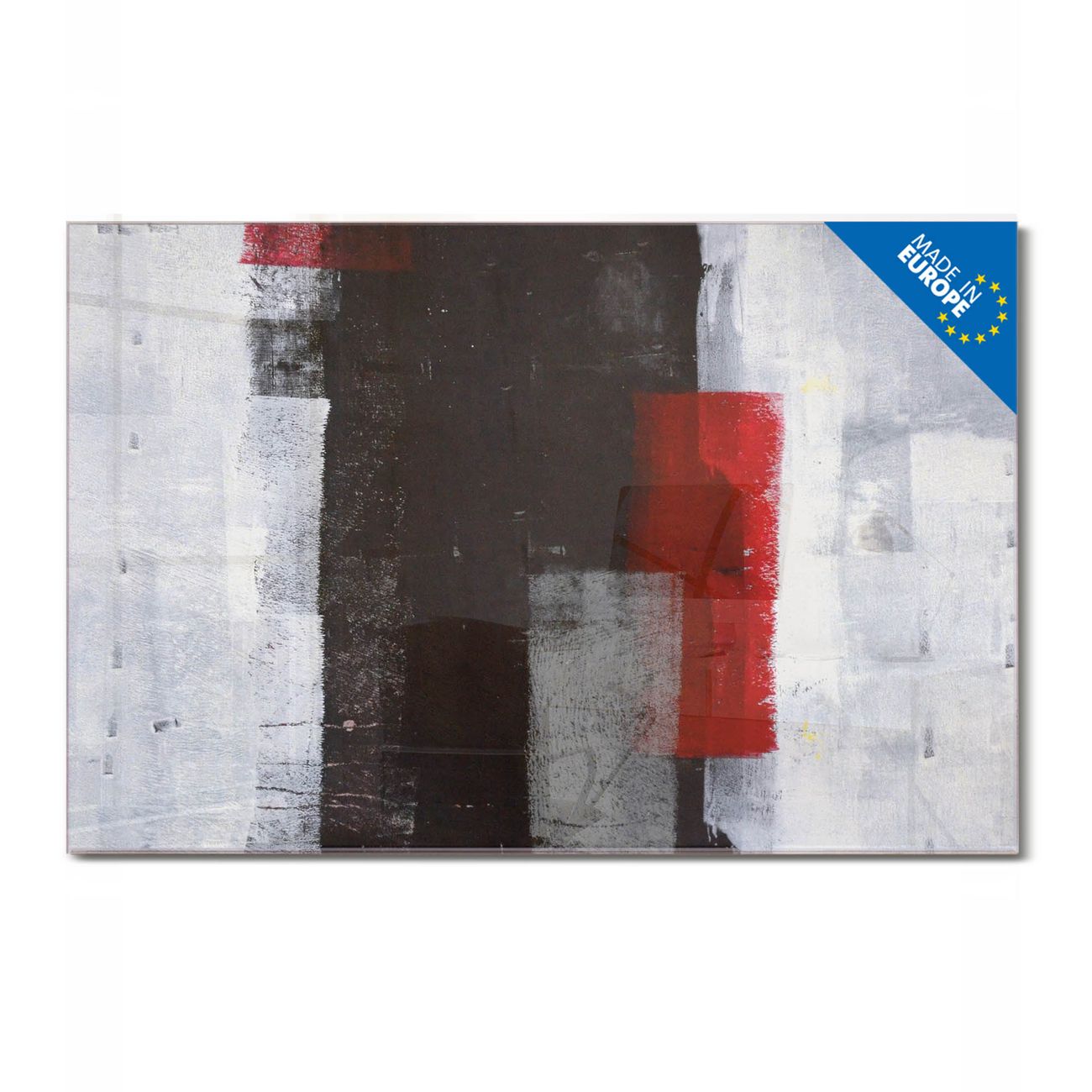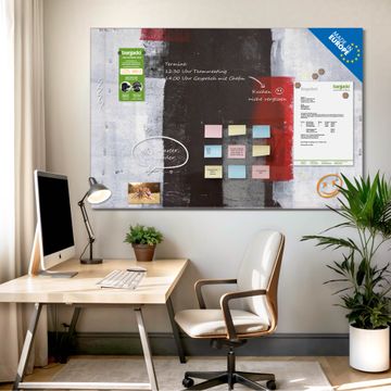 Material: 4mm Sicherheitsglas mit Metallrückwand Eigenschaften: beschreibbar, magnetisch, kratzfest Maße: 75x50x0,6cm, 5,63kg schwer Motiv Nummer 11556 Abstrakt Rot Zubehör: inklusive 4 Neodym-Magnete