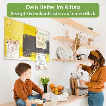 Ein Stück Design, das Ihren Alltag organisiert. Schreiben, heften, inspirieren - alles an einem Ort. Qualität, die man spürt. Montage leicht gemacht. Handwerk mit Herz - veredelt in Sachsen. Einzigartiges Design mit Motiv Motiv Abstrakt Gelb Beschreibbare Glasoberfläche, leicht zu reinigen Starke Magnetkraft durch Stahlrückwand Inklusive 4 Neodym-Magneten Flexible Montageoptionen Handveredelt in Sachsen - Qualität, die bleibt