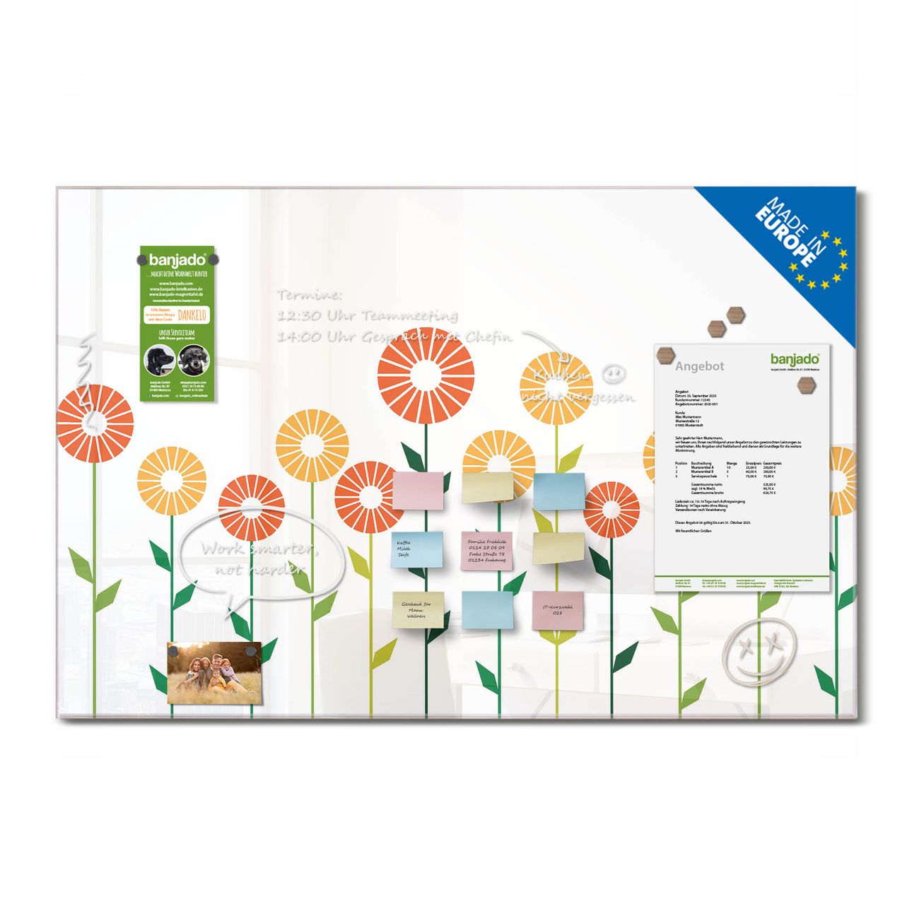 Glas Magnettafel im Querformat Motiv Abstrakte Margeriten