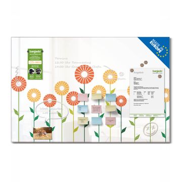 Material: 4mm Sicherheitsglas mit Metallrückwand Eigenschaften: beschreibbar, magnetisch, kratzfest Maße: 120x80x0,6cm, 14,40kg schwer Motiv Nummer 10921 Abstrakte Margeriten Zubehör: inklusive 4 Neodym-Magnete